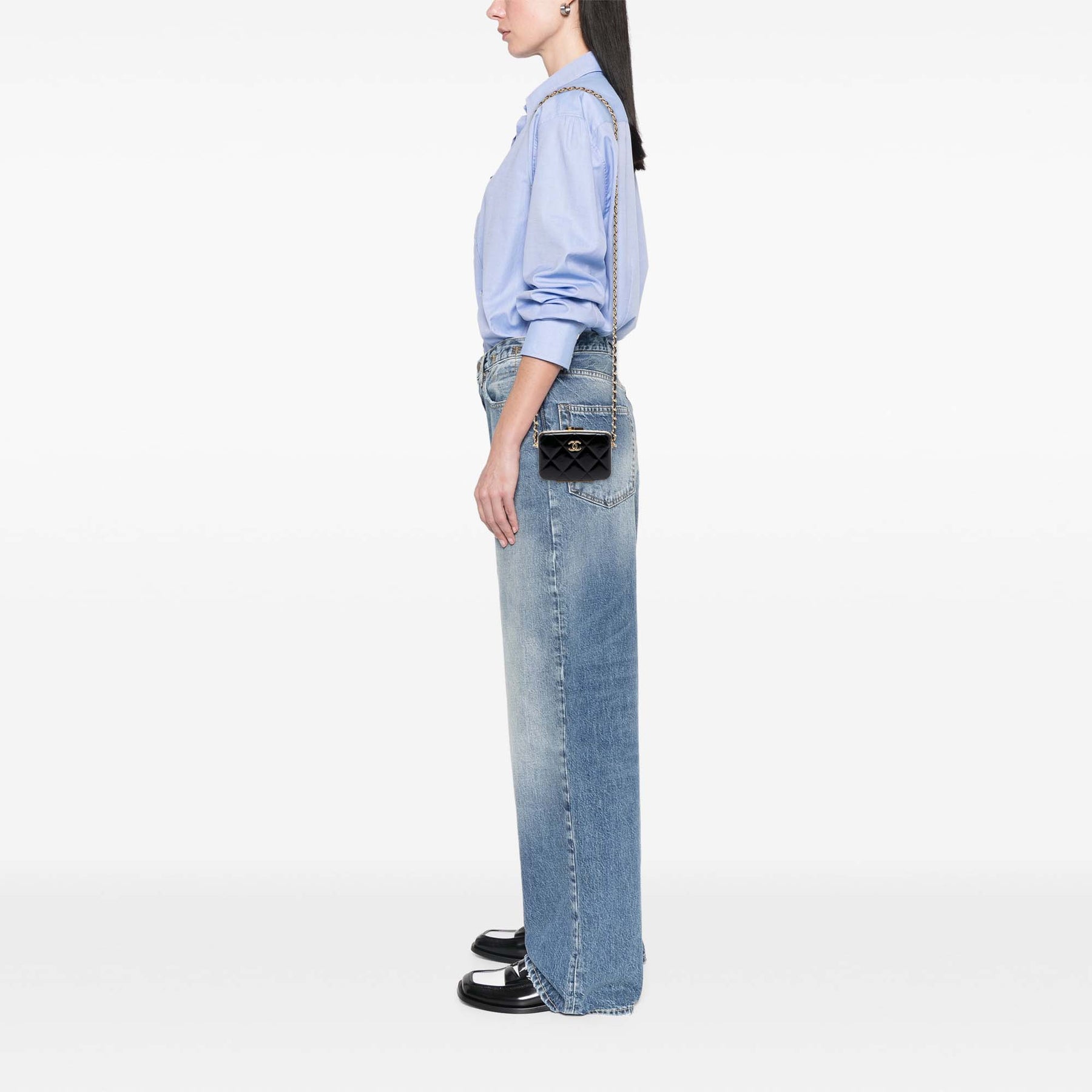Chanel Small Glazed Cuir de chèvre Boîte avec chaîne