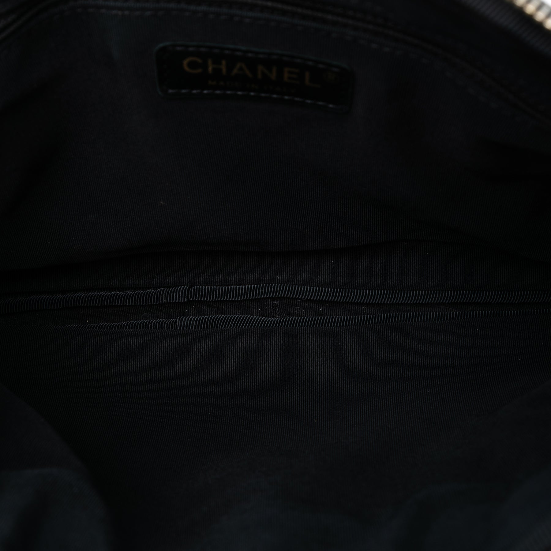 Ce sac bandoulière est en cuir d'agneau, avec une bandoulière chaîne en cuir tressé, une fermeture zippée sur le dessus, des poches extérieures plaquées et une poche intérieure zippée. Il est en excellent état.