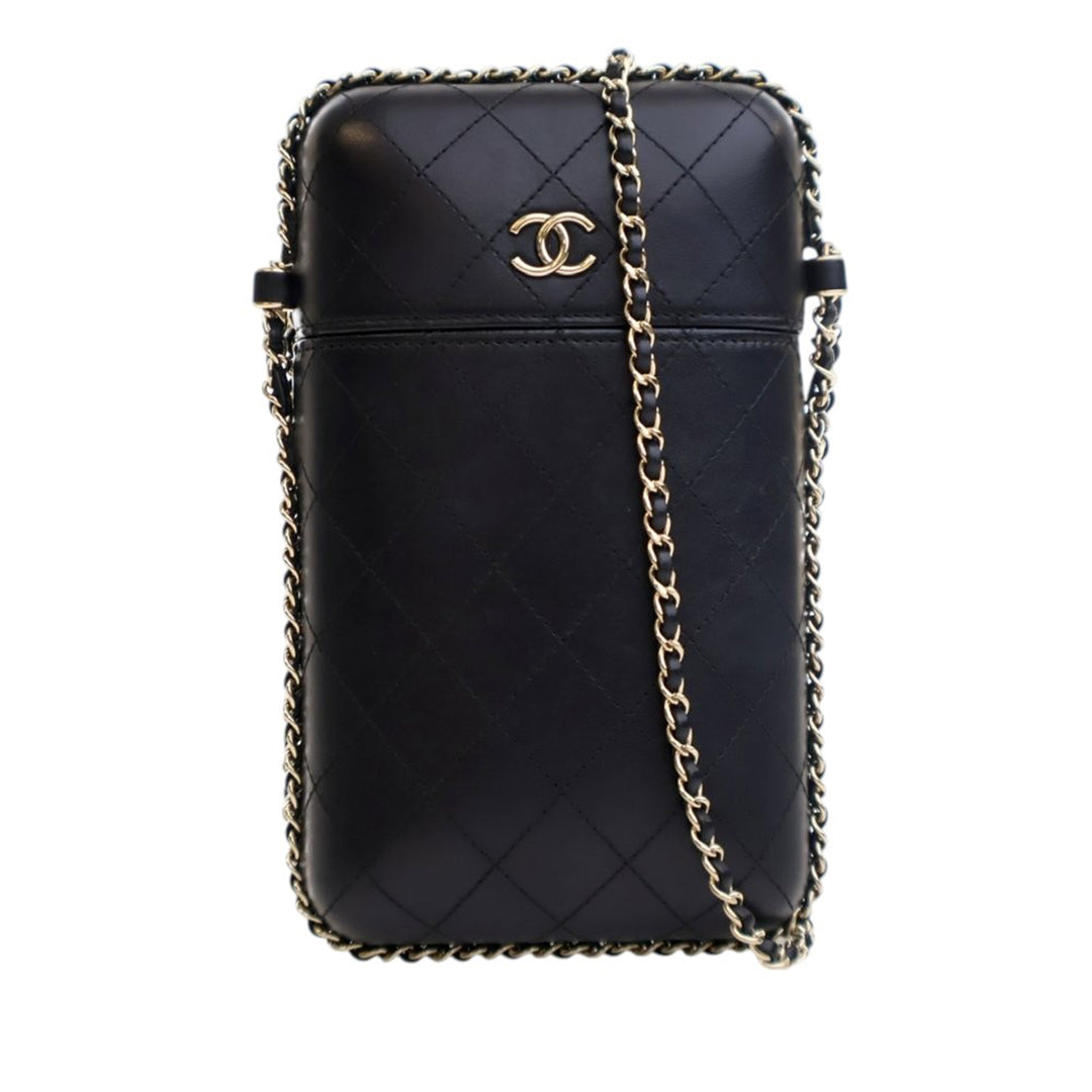 Chanel CC Quilted Cuir d’agneau Chain Around Phone Holder Noir