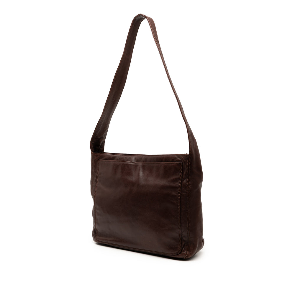 Chanel Medium Classic Chevron Cuir de veau Pleated Double rabat Marron