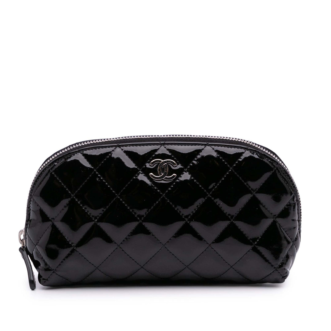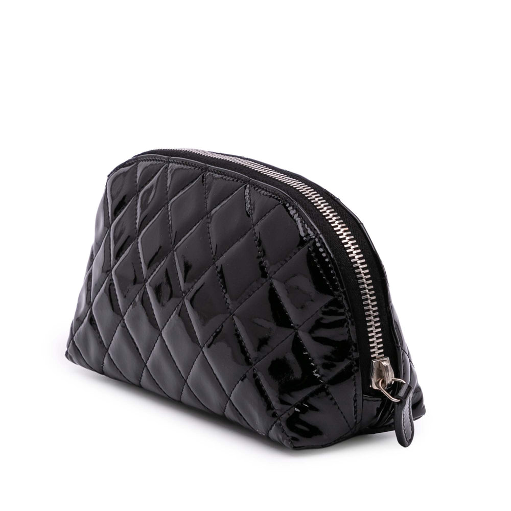 Chanel CC Quilted Cuir verni Cosmetic Pochette Noir