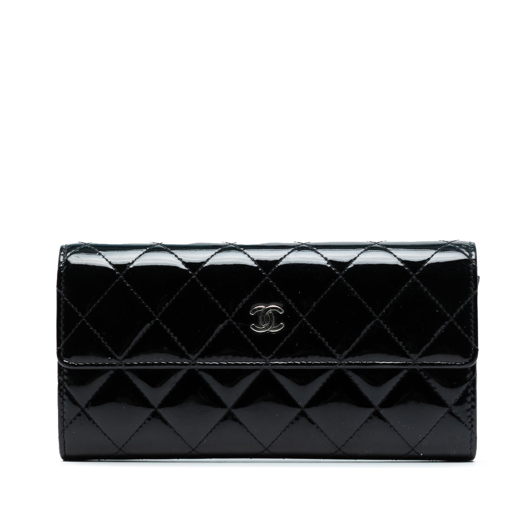 Chanel CC Quilted Crinkled Cuir verni Wallet On Chain Noir