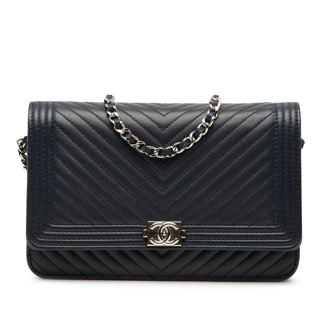 Chanel Pleated Crumpled Chevron Le Boy Wallet On Chain Noir