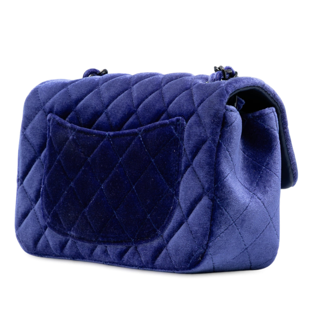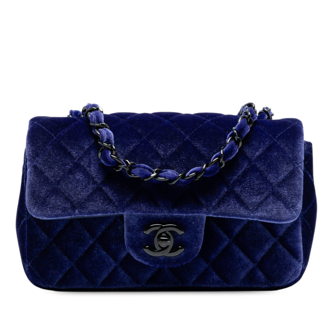 Chanel Mini Rectangular Classic Velours Simple rabat Bleu