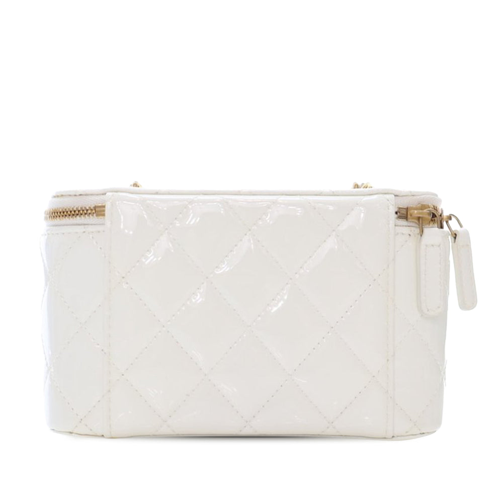 Chanel Small Quilted Cuir verni Coco Heart Charms Vanity Étui with Chain Blanc