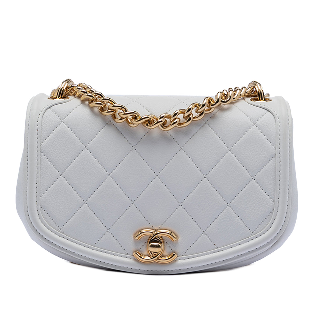 Chanel Small Matelassé Cuir de veau Underline Saddle à rabat
