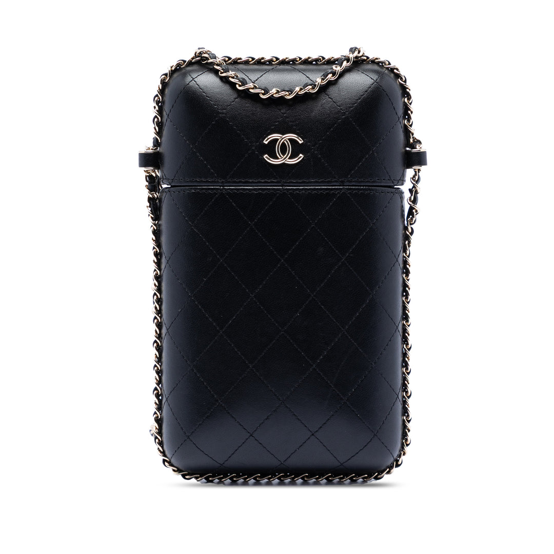 Chanel CC Matelassé Cuir d’agneau Sac rond à chaîne Phone Holder