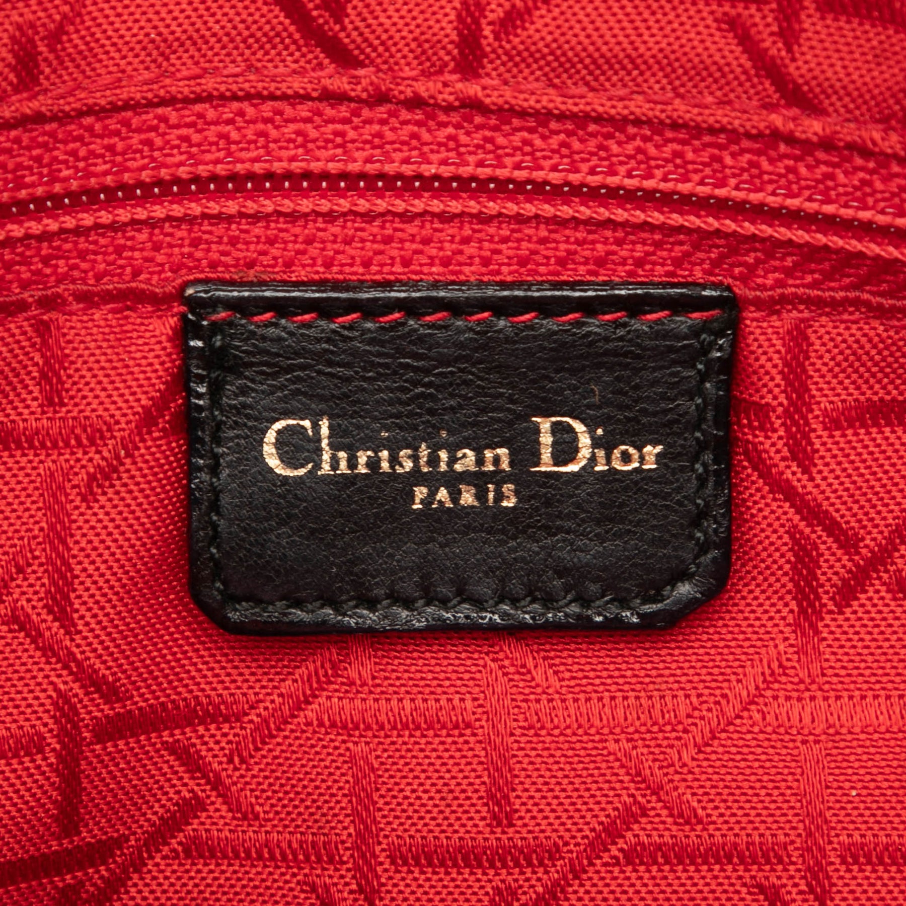 Le sac Lady Dior est confectionné en cuir d'agneau matelassé et possède des anses plates en cuir, une fermeture zippée sur le dessus et une poche intérieure zippée. Il est en bon état.