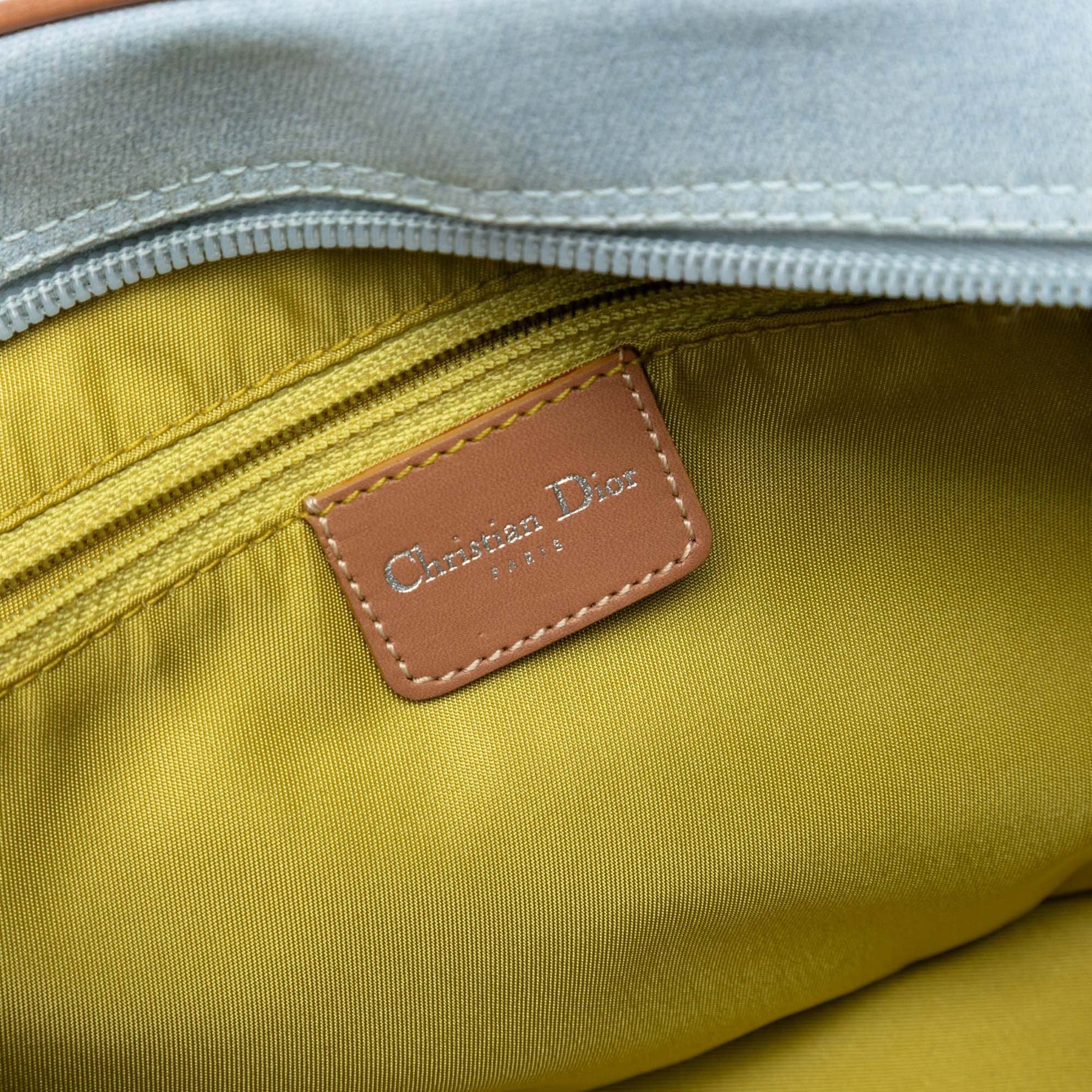 Le sac Double Saddle est en denim, avec des anses en cuir roulé, une fermeture zippée sur le dessus, une lanière en cuir avec boucle en D, des poches extérieures à rabat et des poches intérieures zippées et plaquées. La face avant et les anses ont été repeintes. Il est en bon état.