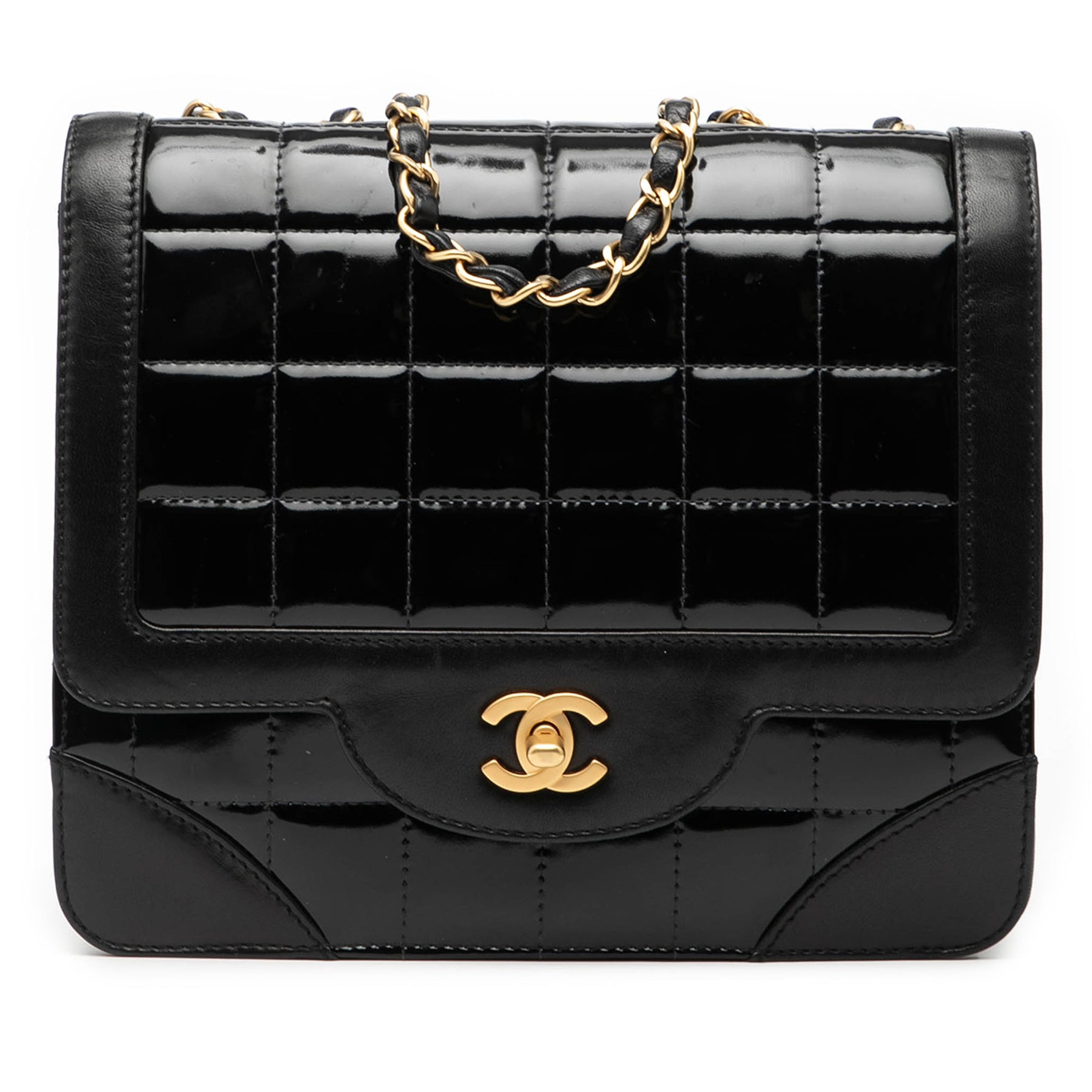 Chanel CC Chocolate Bar Cuir verni et Cuir d’agneau Square à rabat