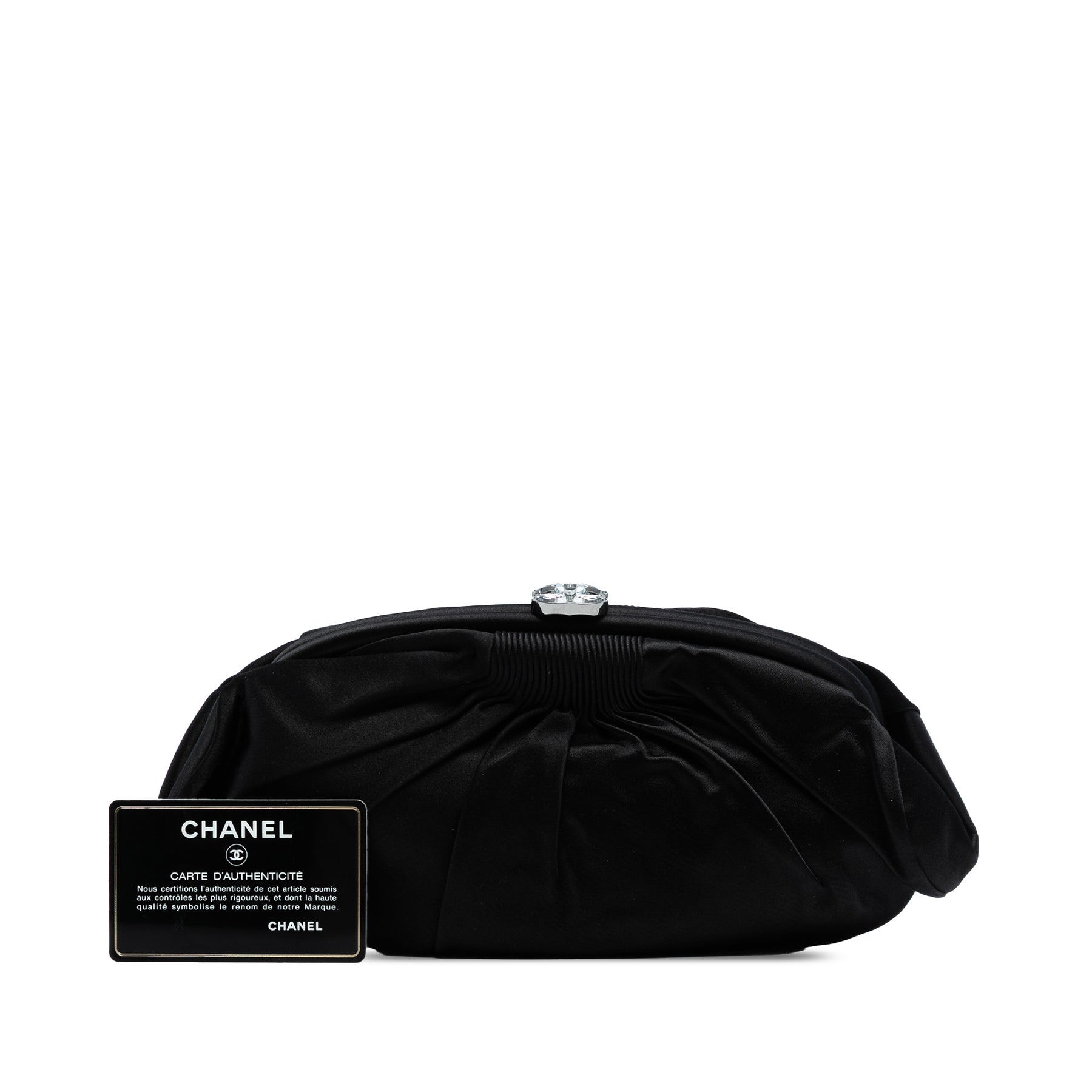 Cette pochette est en satin et possède une fermeture à armature métallique. Elle est en excellent état.