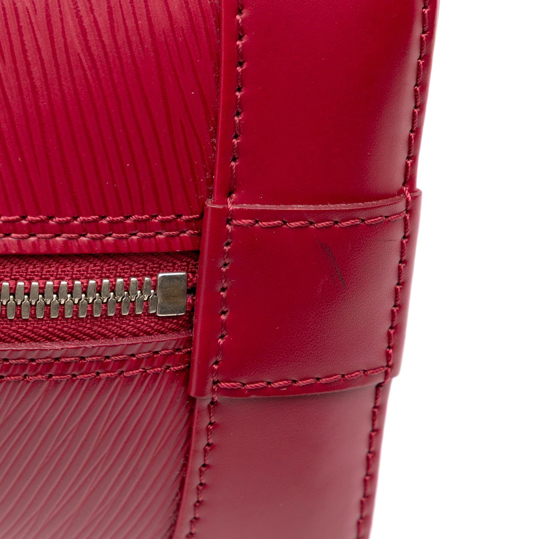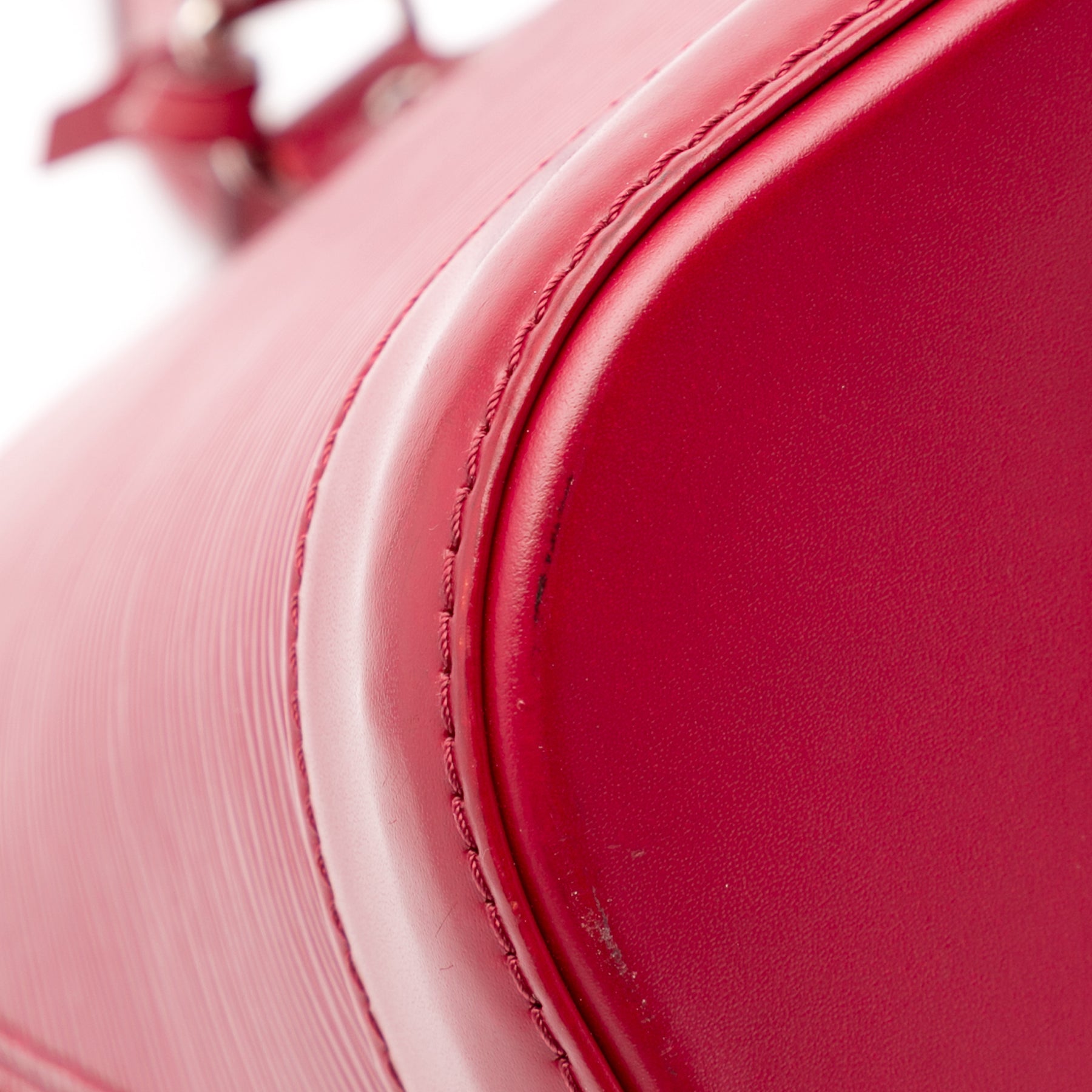 Le sac Alma MM est doté d'un corps en cuir Epi, de poignées roulées en cuir, d'une fermeture éclair sur le dessus et d'une poche intérieure plaquée. Il est en bon état.