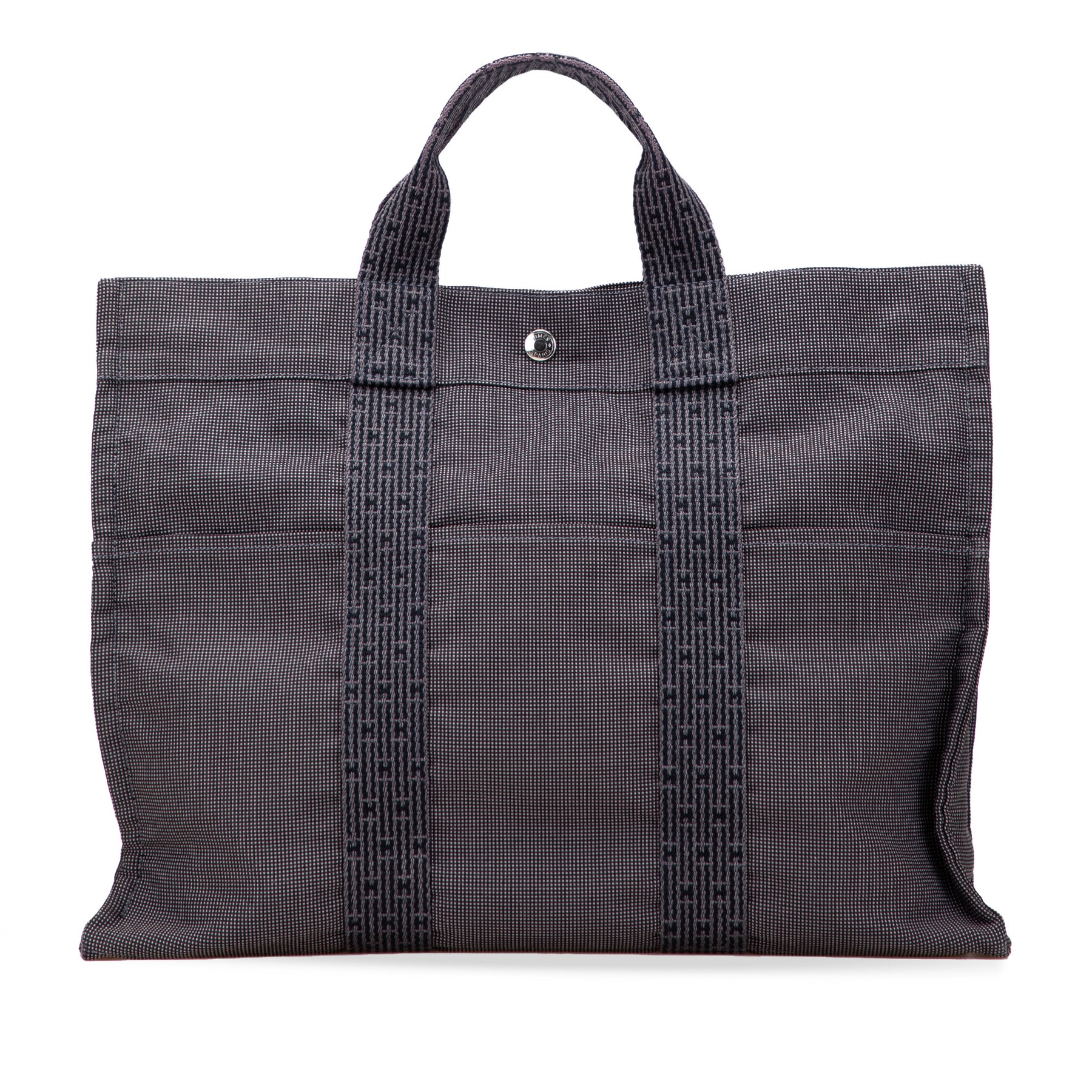 Le sac cabas Herline Tote MM est en toile et possède des poches plaquées extérieures à l'avant et à l'arrière, des anses plates, une fermeture zippée sur le dessus et une poche plaquée intérieure. Il est en bon état.