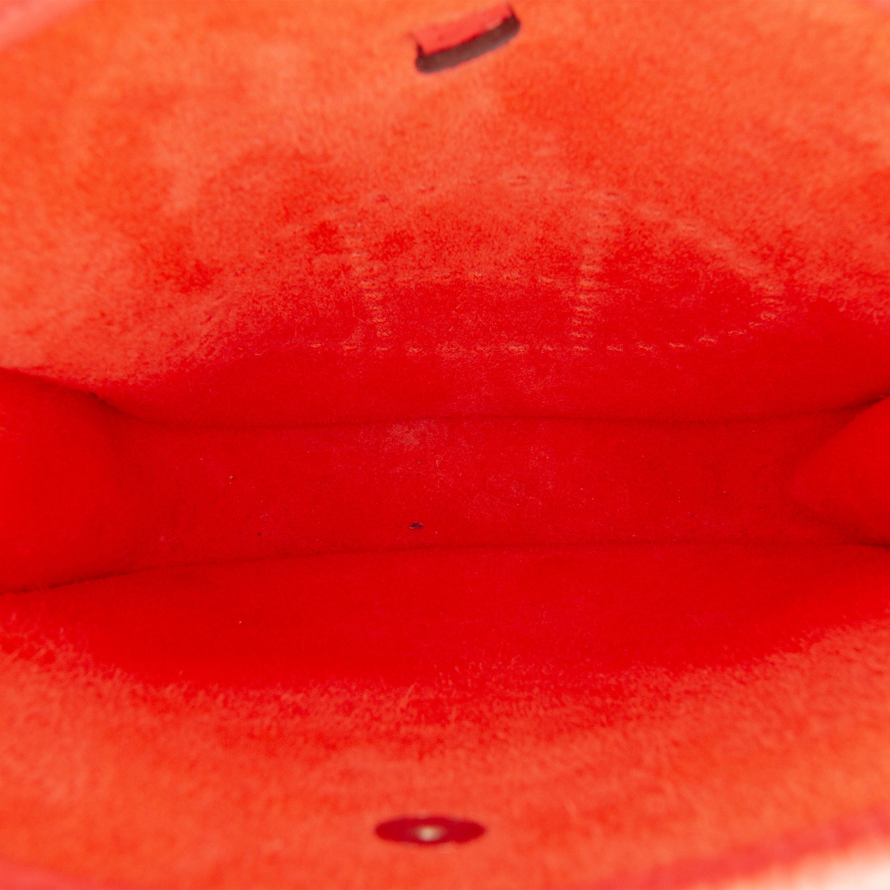 Ce sac Evelyne TPM est doté d'un corps en cuir Clémence couleur Rose Texas, d'une bandoulière plate en toile et d'une ouverture sur le dessus avec fermeture à rabat. Il est en bon état.