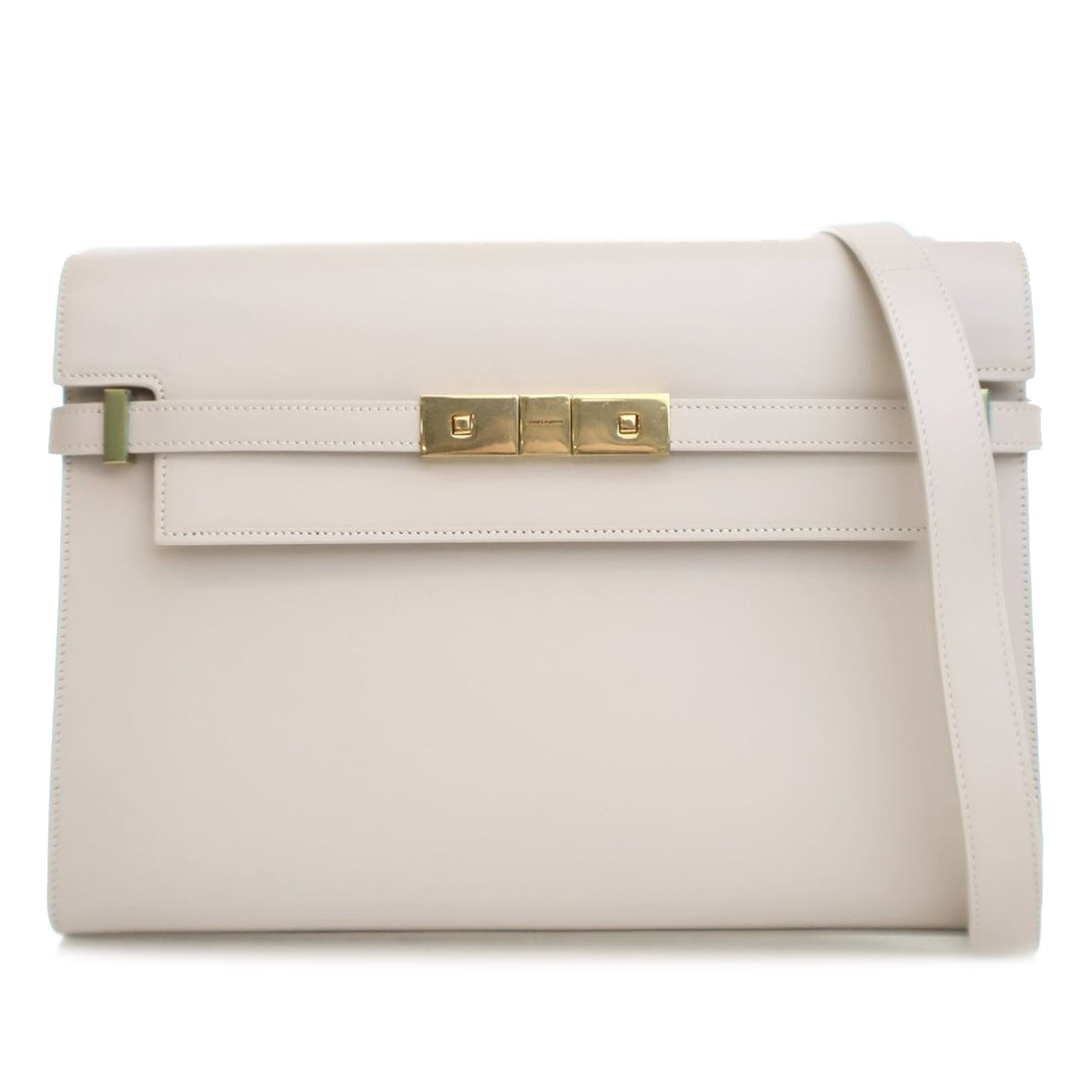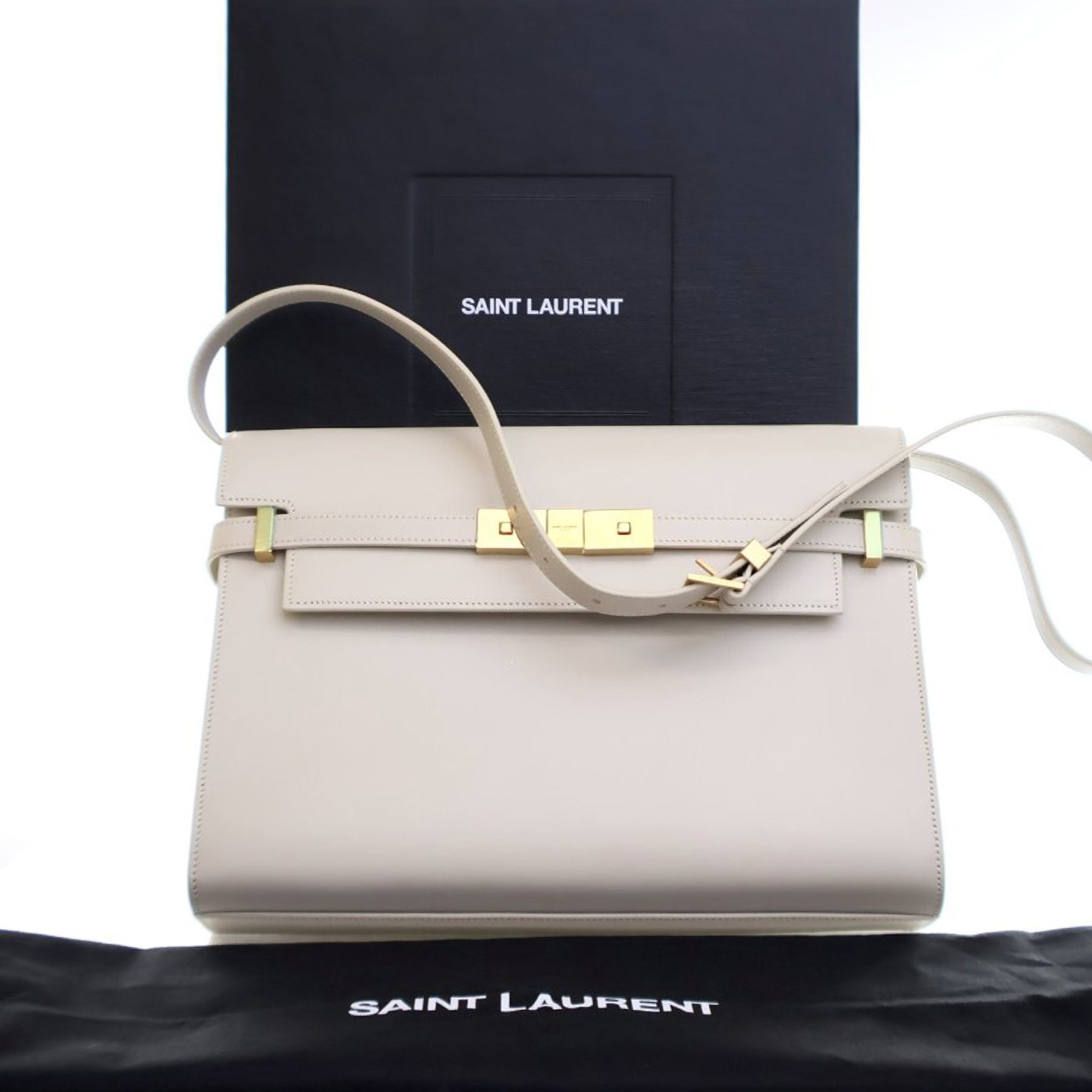 Le sac Manhattan est doté d'un corps en cuir, d'une bandoulière plate en cuir, d'un rabat avant avec fermeture à ceinture et d'une poche intérieure plaquée. Il est en excellent état.