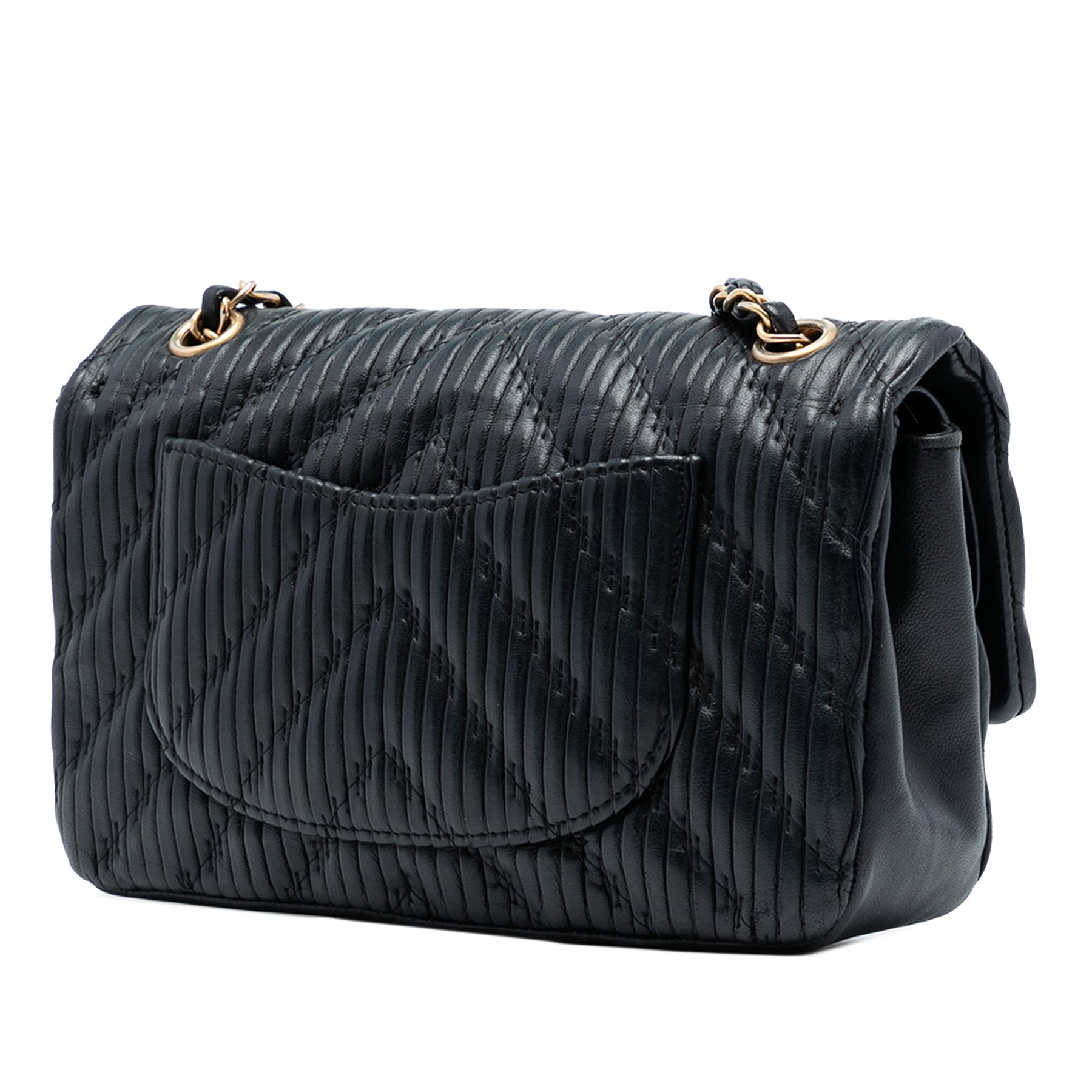 Chanel Medium Classic Chevron Cuir de veau Pleated Double rabat