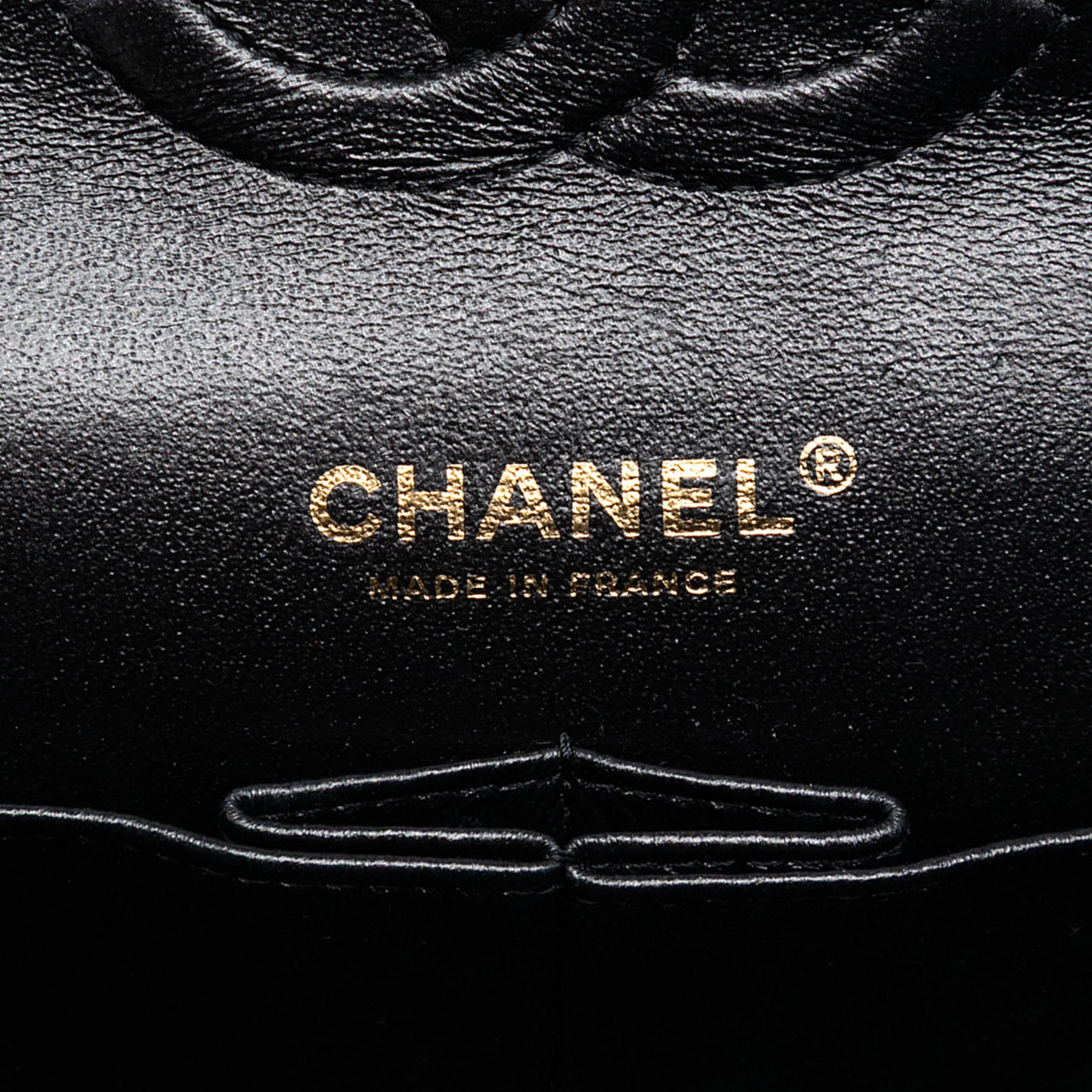 Ce sac bandoulière est en cuir matelassé, avec une bandoulière en chaîne tressée de cuir, un rabat avant orné du double C et d'une fermeture à tourniquet, une poche plaquée extérieure au dos, ainsi que des poches intérieures zippées et plaquées. Il est en bon état.