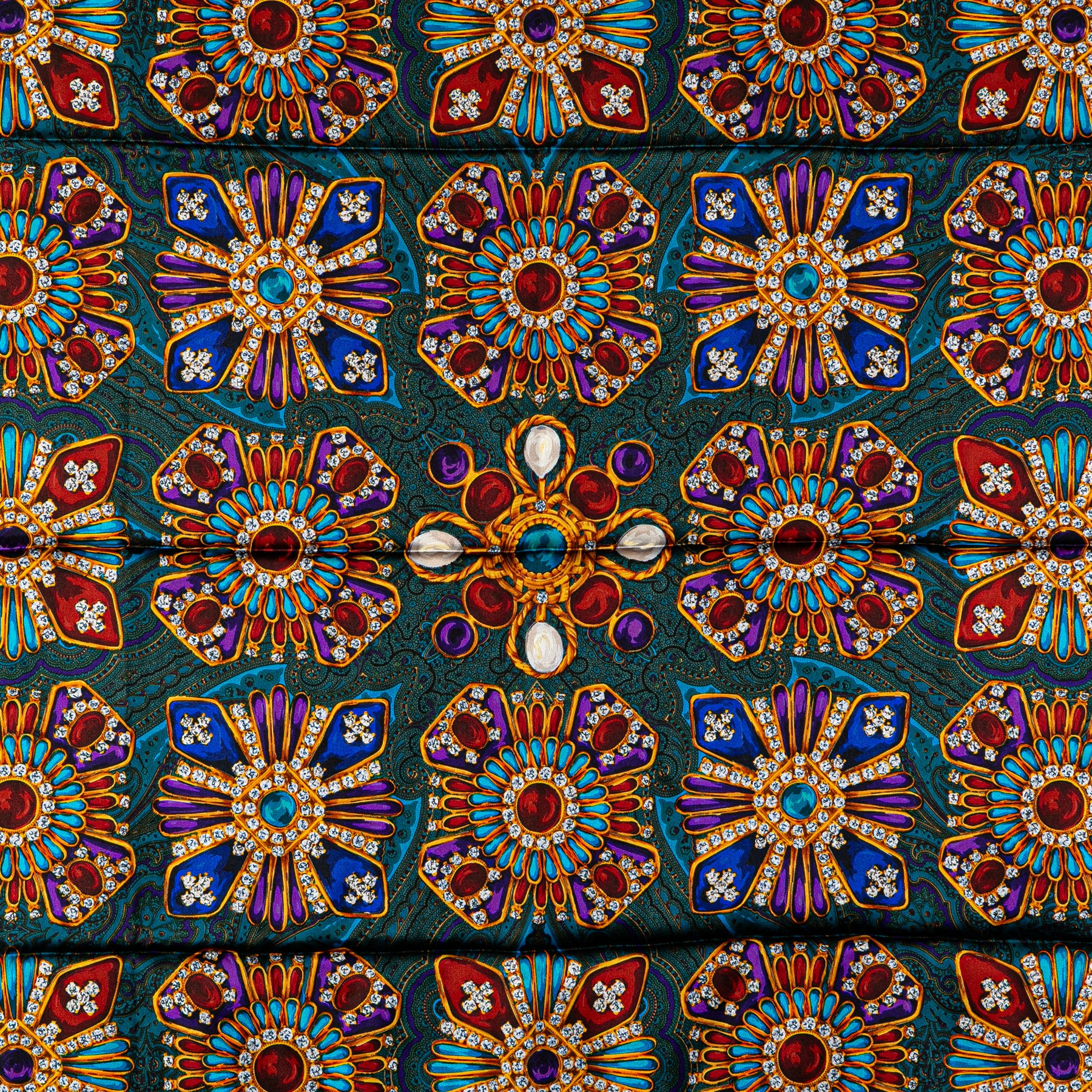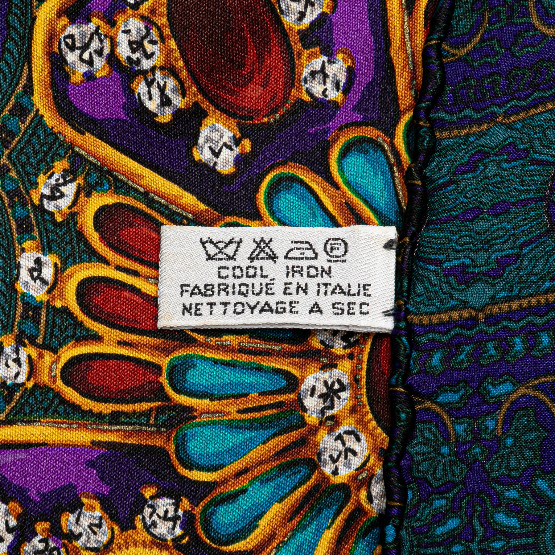 Ce foulard est imprimé sur 100 % soie. Il est en parfait état.