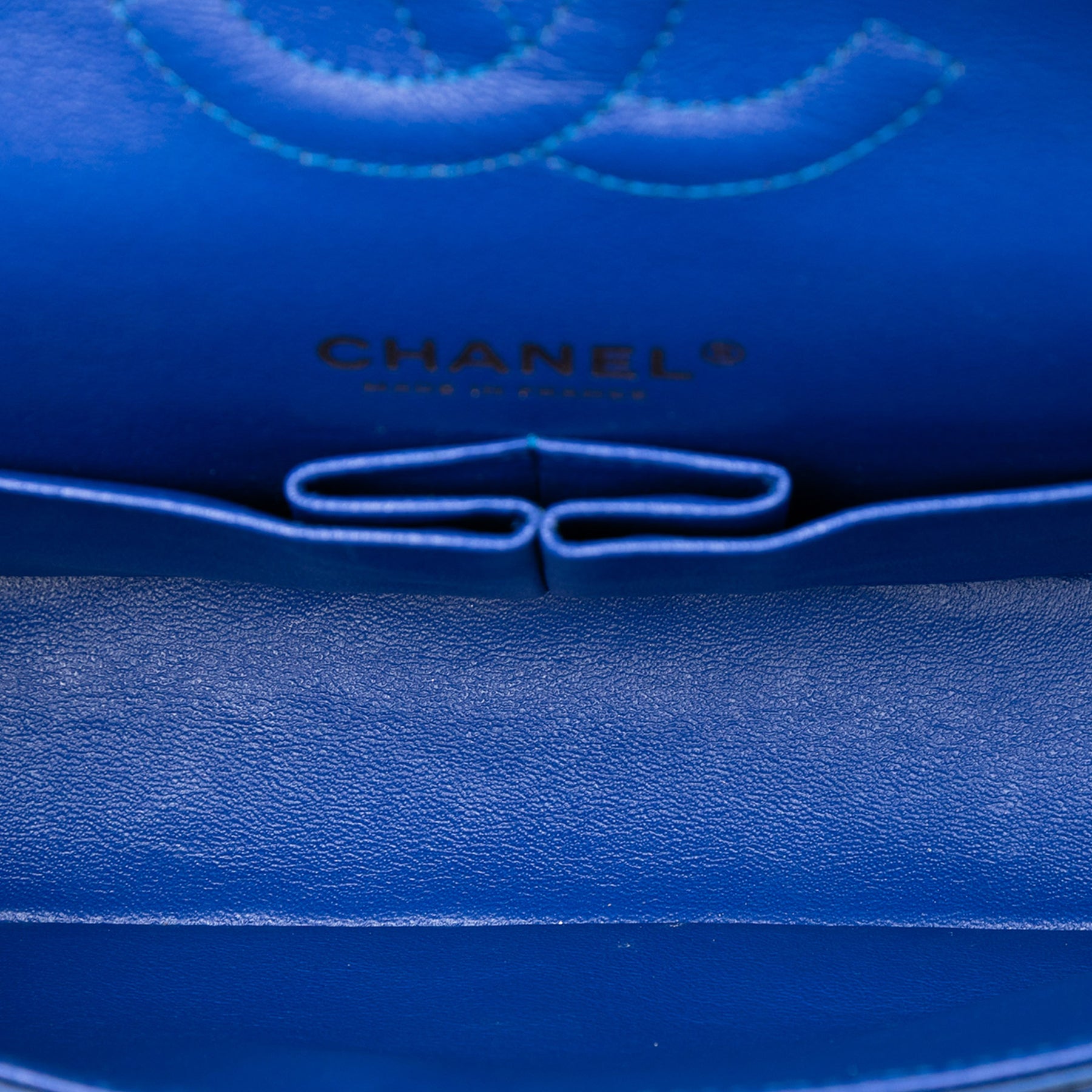 Ce sac bandoulière est en satin matelassé, avec des bandoulières en chaîne tressée, un double rabat avant orné de C entrelacés et d'une fermeture à tourniquet, une poche plaquée extérieure au dos, ainsi que des poches intérieures zippées et plaquées. Il est en bon état.