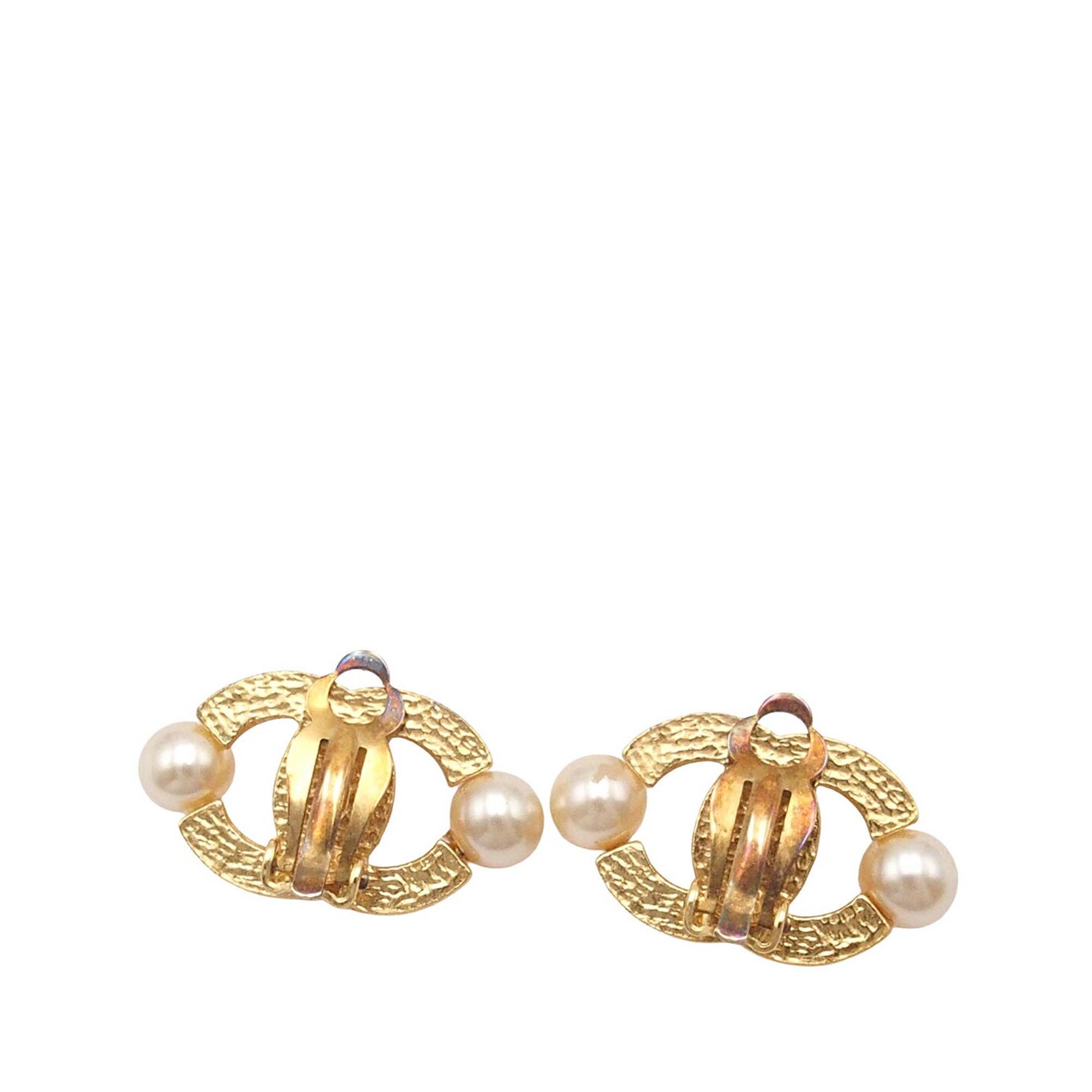 Chanel CC plaqué Perles fantaisie Clip on Boucles d’oreilles