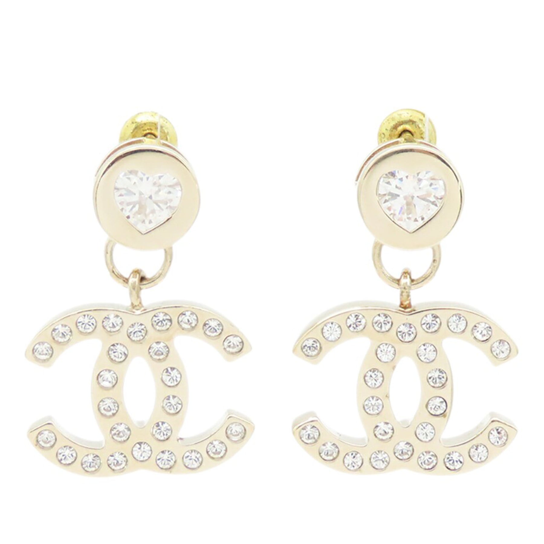 Ces boucles d'oreilles sont plaquées or, ornées de strass et se ferment par une poussette. Elles sont en bon état.