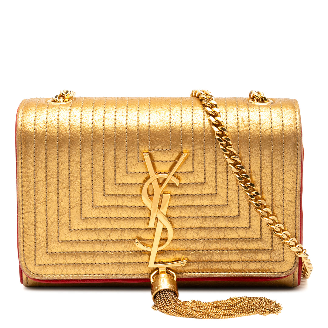 Saint Laurent Metallic Glitter Monogram Kate Tassel Chain Wallet