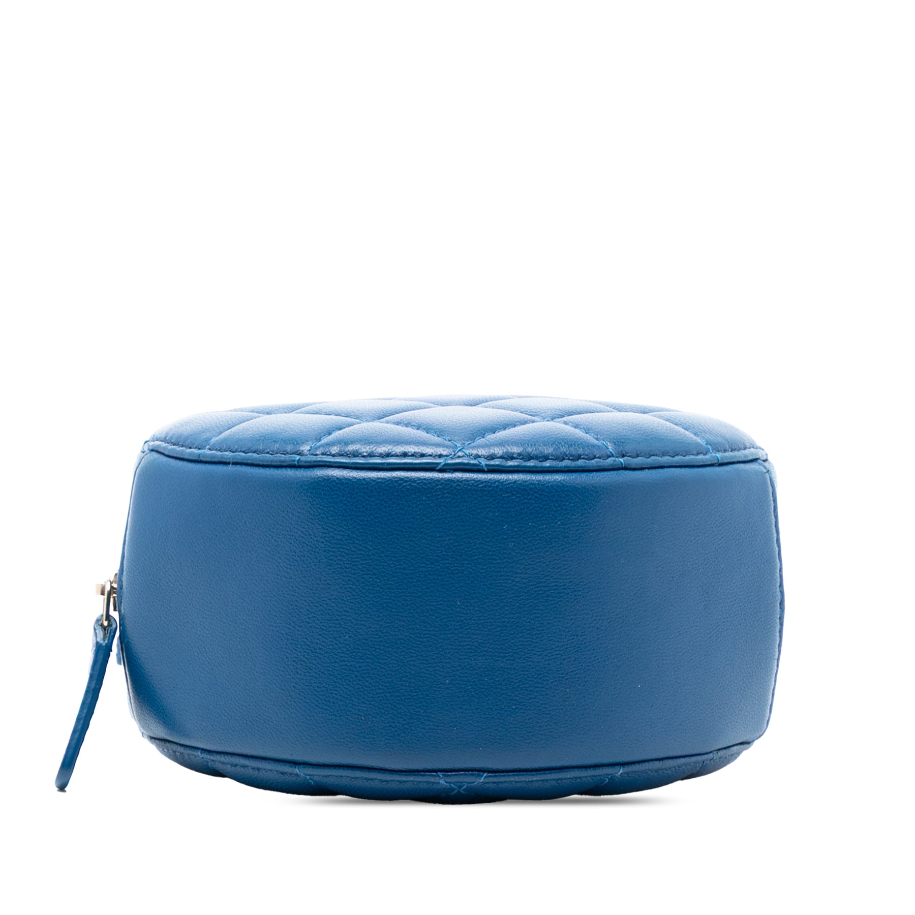 Ce sac bandoulière est confectionné en cuir d'agneau matelassé et possède une bandoulière en chaîne tressée ornée de perles, une fermeture zippée sur le dessus et des poches intérieures plaquées. Il est en excellent état.