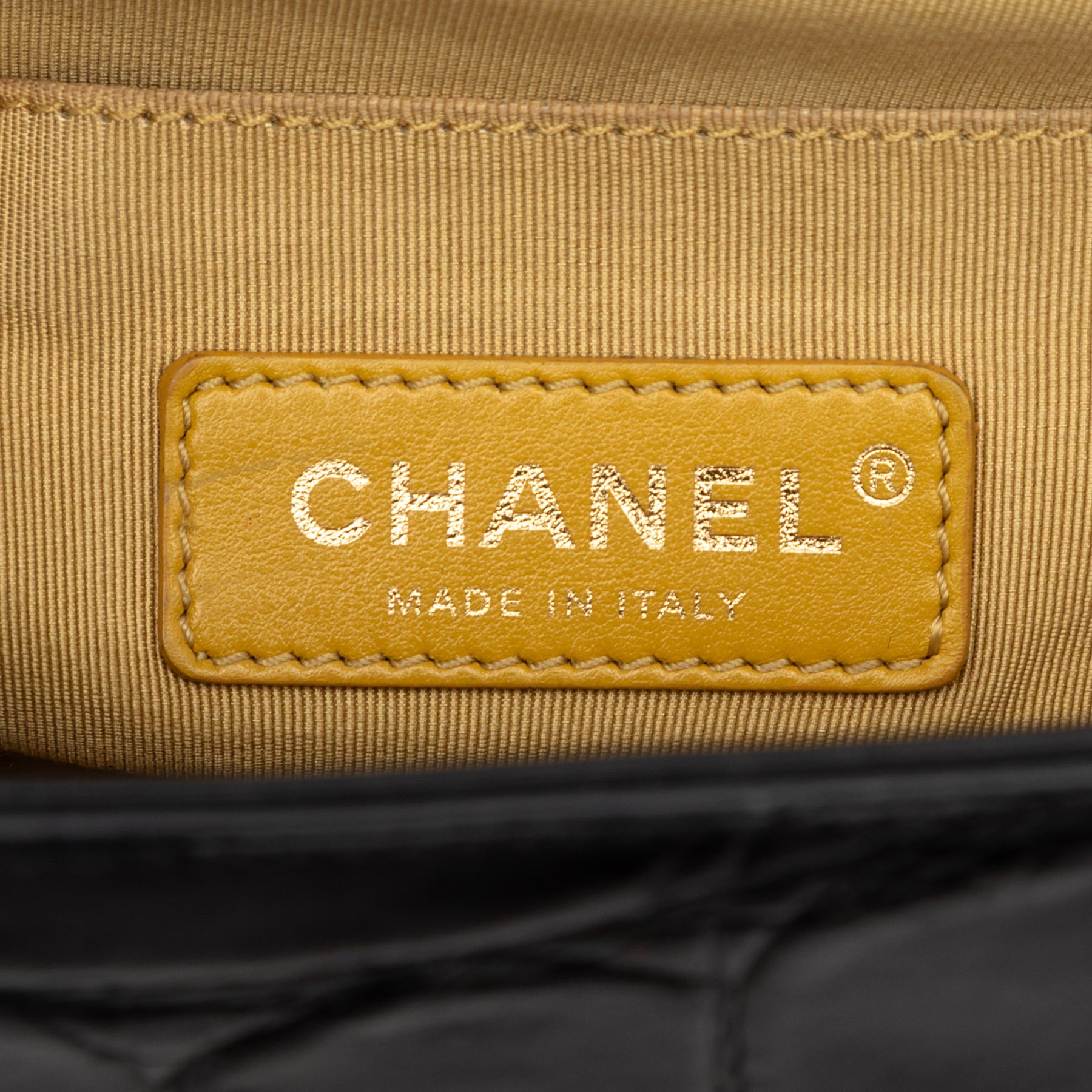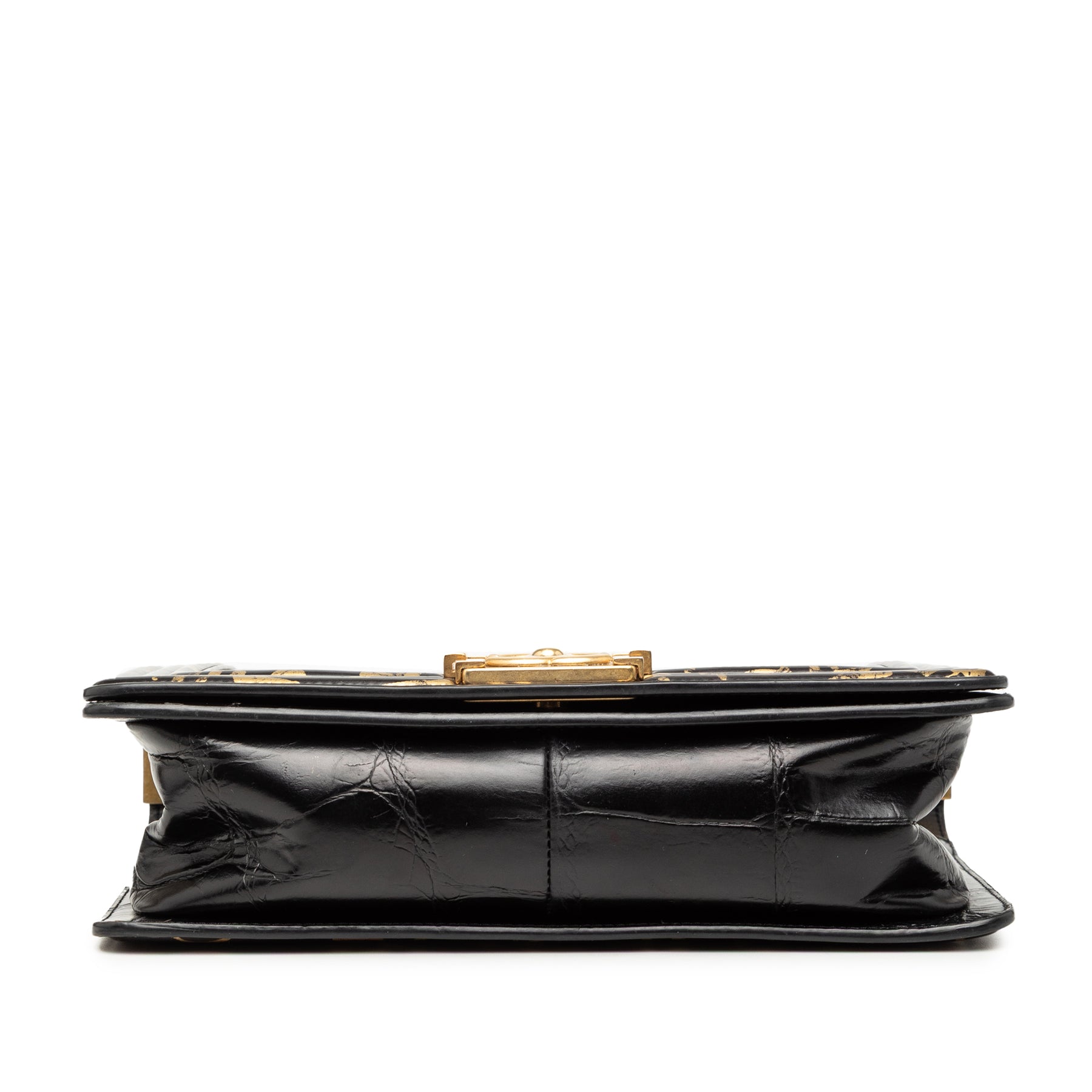 Le sac Boy Flap est confectionné en cuir gaufré et imprimé, possède une bandoulière chaîne gourmette avec protection en cuir, un rabat avant orné de deux C entrelacés et d'une fermeture à pression, ainsi qu'une poche intérieure plaquée. Il est en bon état.