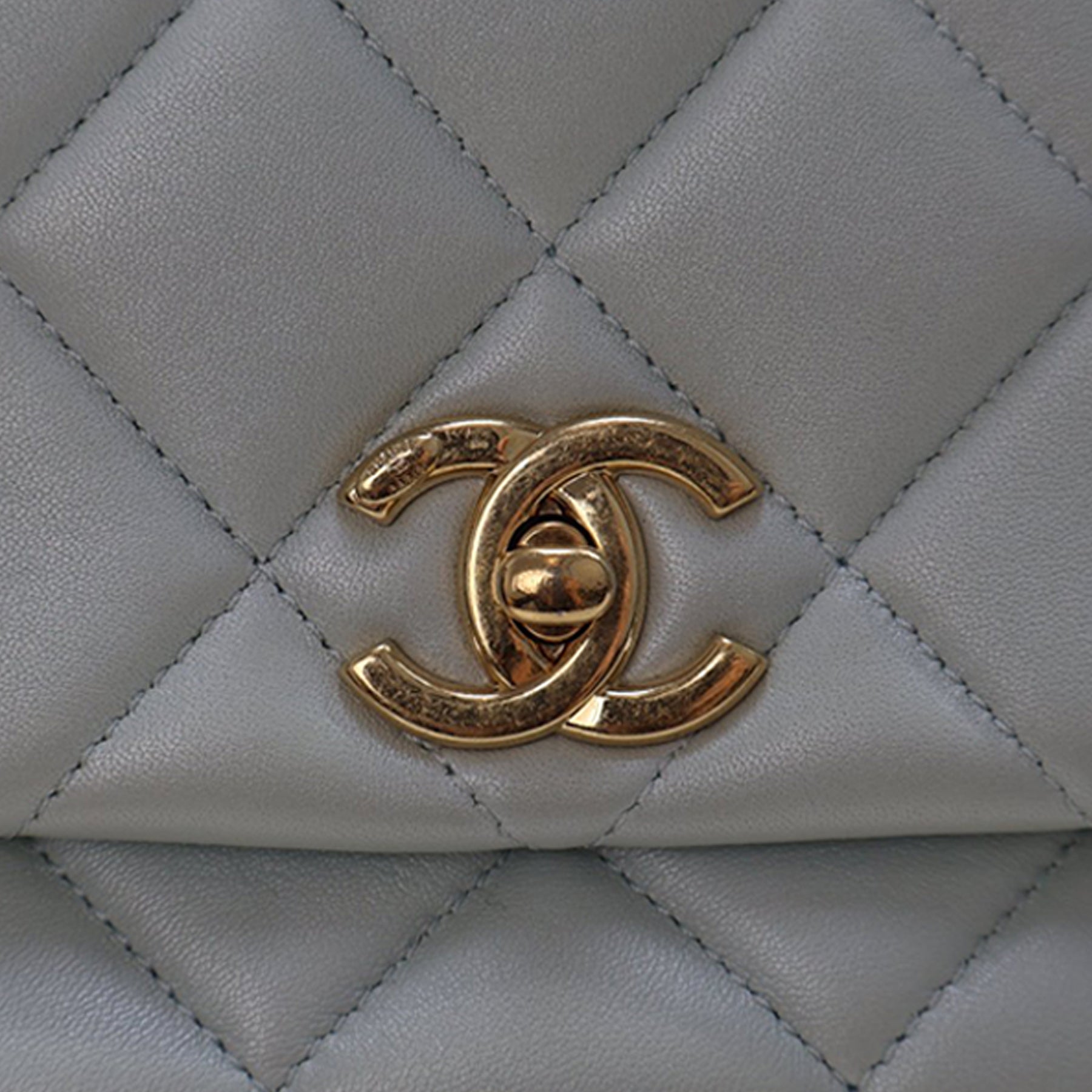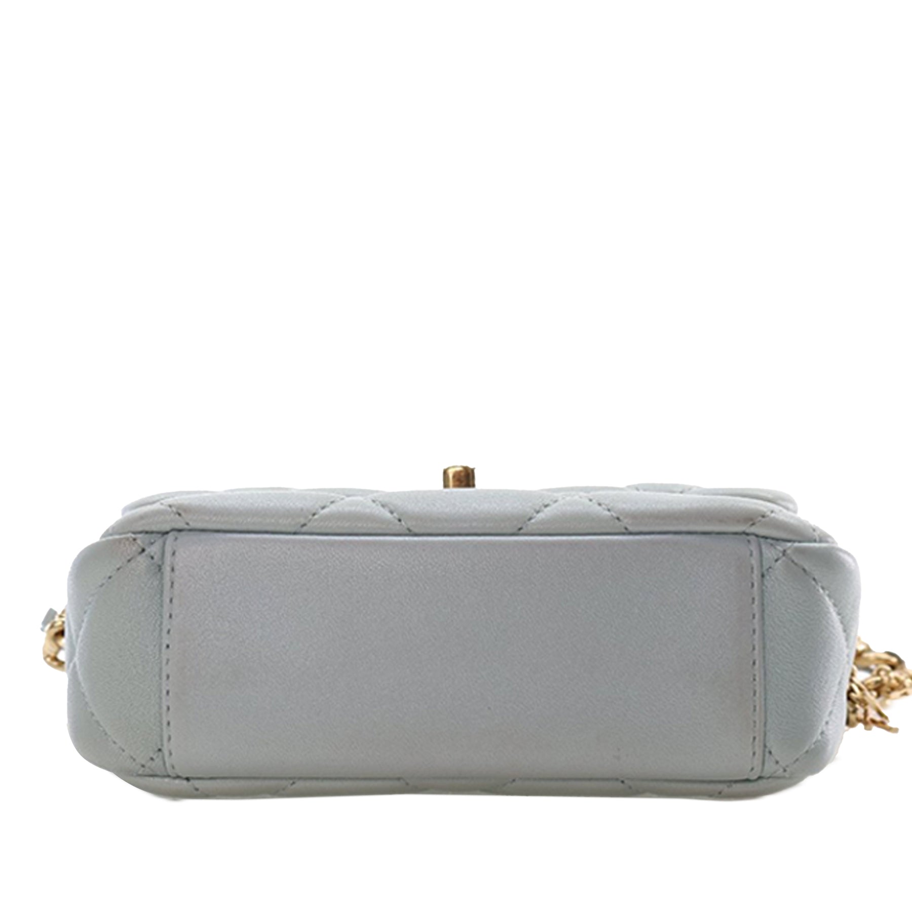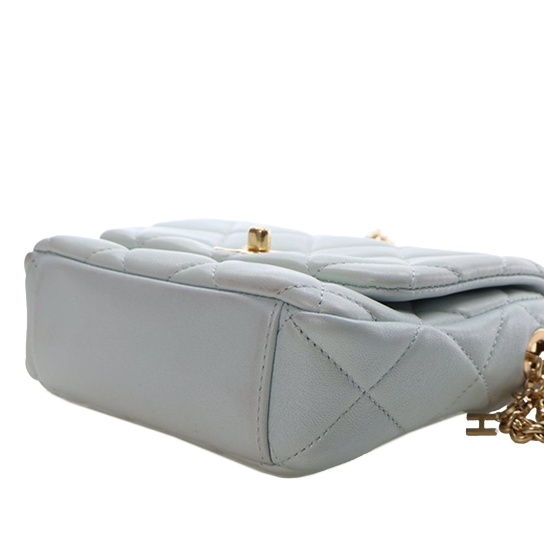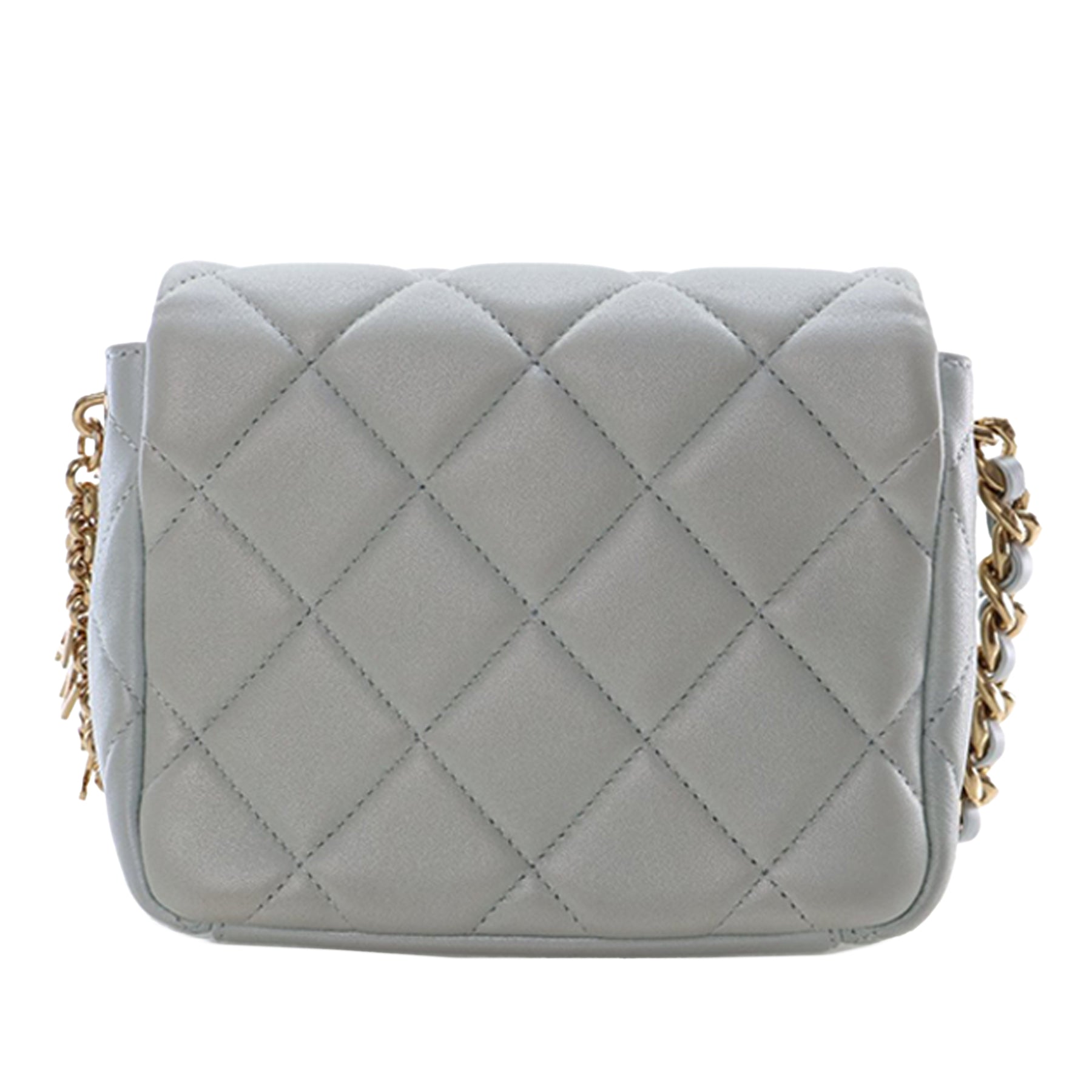 Ce sac bandoulière est confectionné en cuir d'agneau matelassé et possède une bandoulière en chaîne tressée ornée du logo CC, un rabat avec fermoir tourniquet et une poche intérieure plaquée. Il est en excellent état.