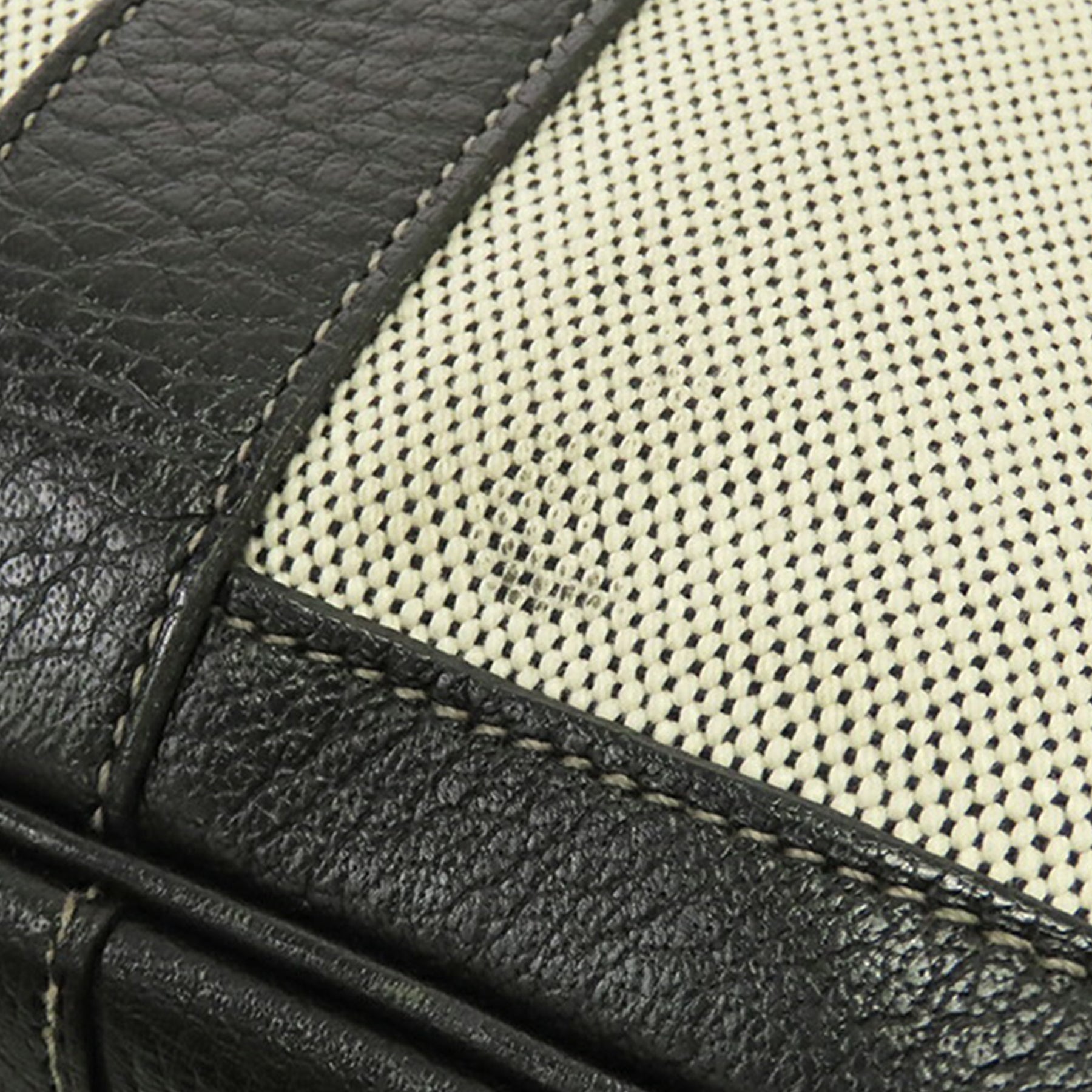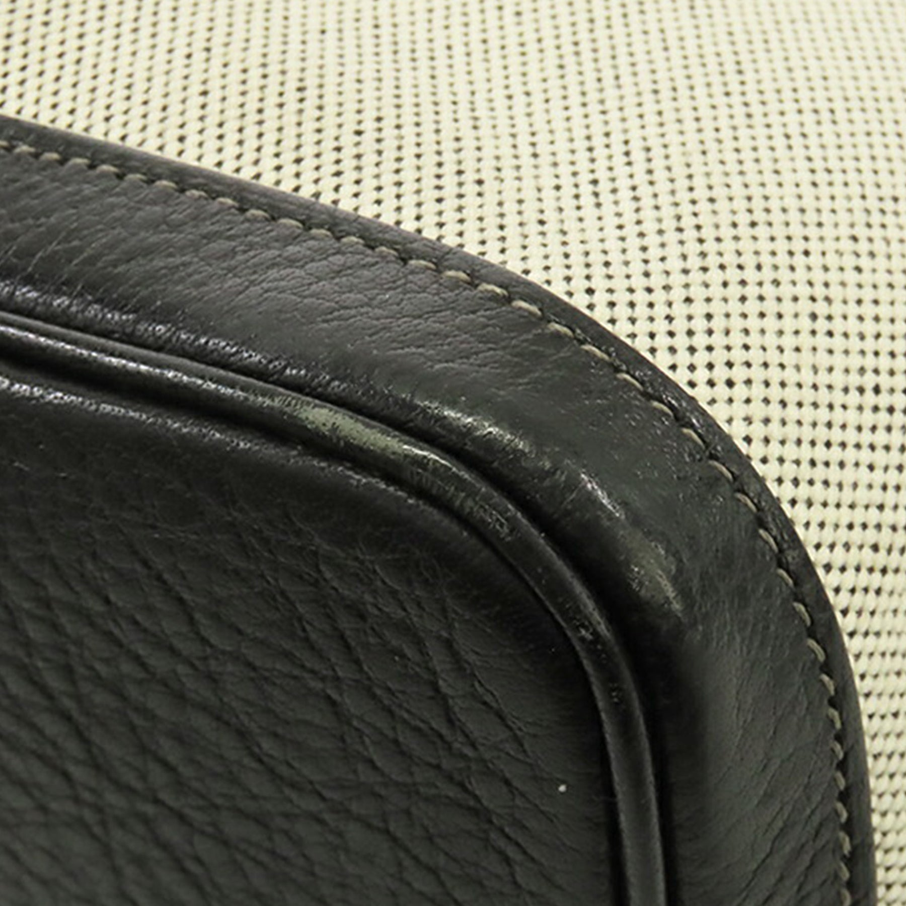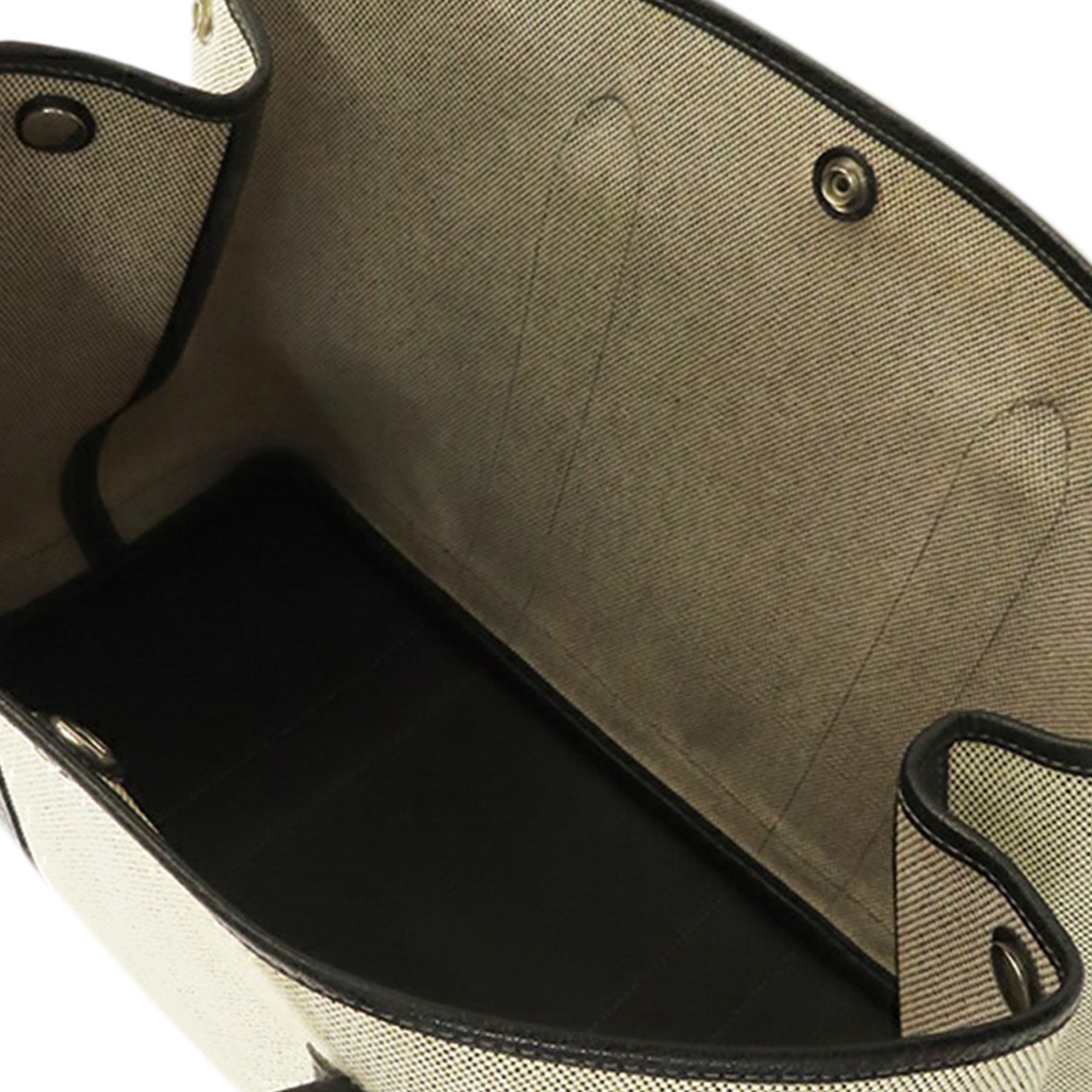 Le sac Garden Party 36 est confectionné en toile avec des finitions en cuir de buffle, des anses roulées en cuir et une ouverture sur le dessus avec fermeture à bouton-pression. Il est en excellent état.