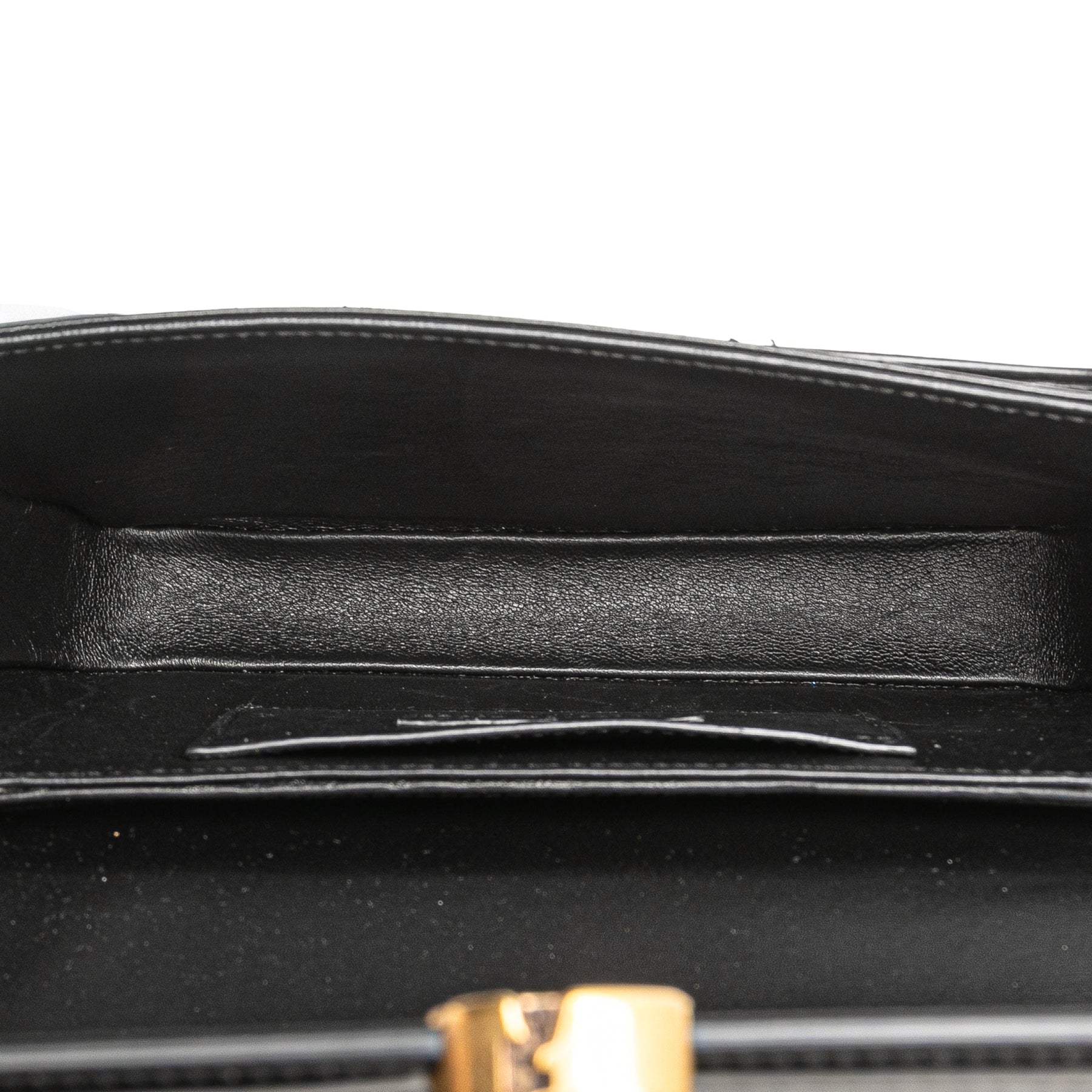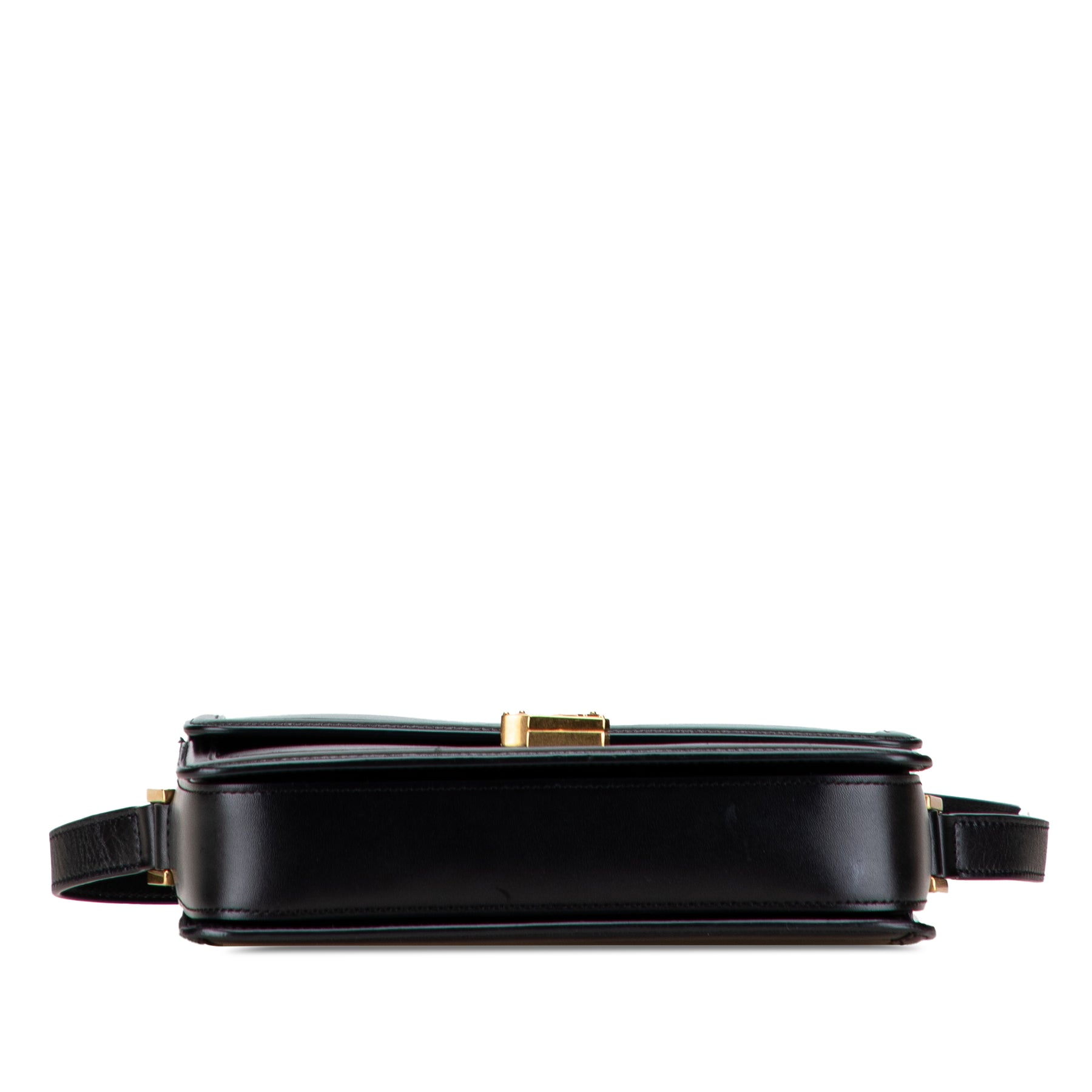 Le sac Solferino est en cuir, possède une bandoulière plate réglable, un rabat avec fermoir et une poche intérieure plaquée. Il est en bon état.