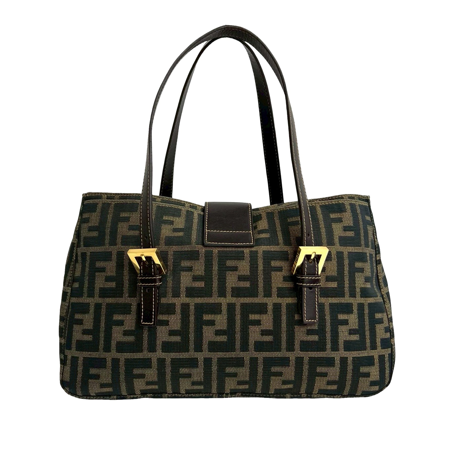 Ce sac à main est en toile, possède des anses plates en cuir, une fermeture magnétique et une poche intérieure zippée. Il est en excellent état.