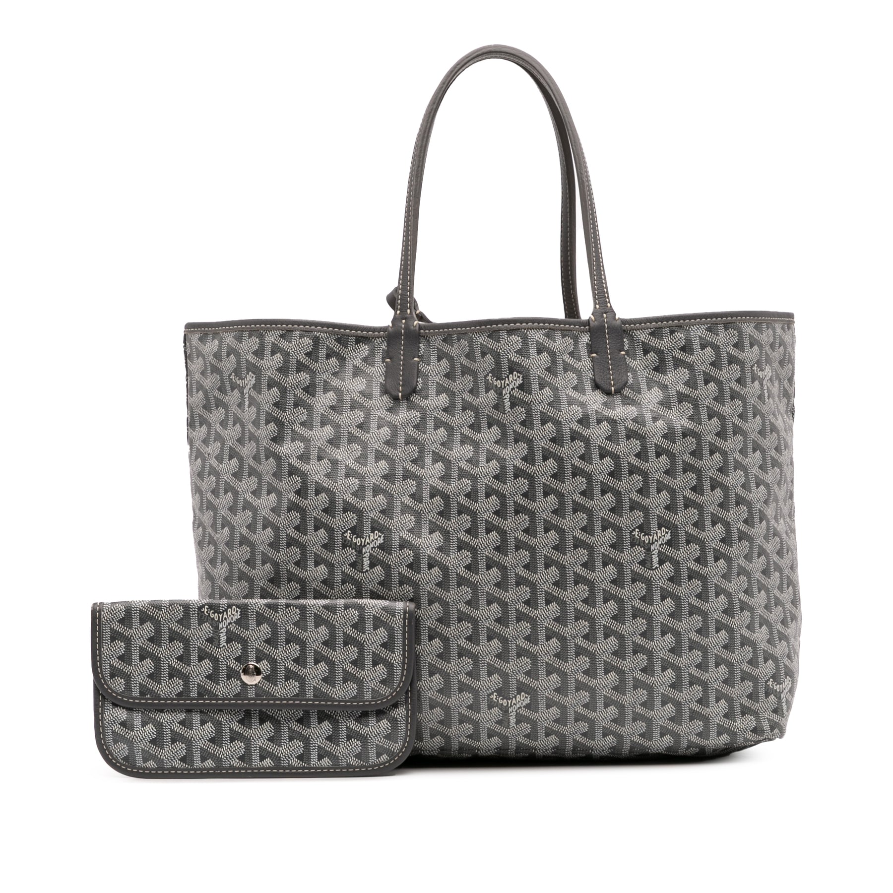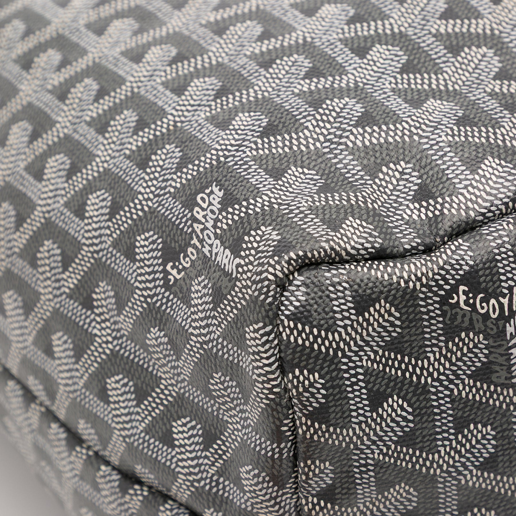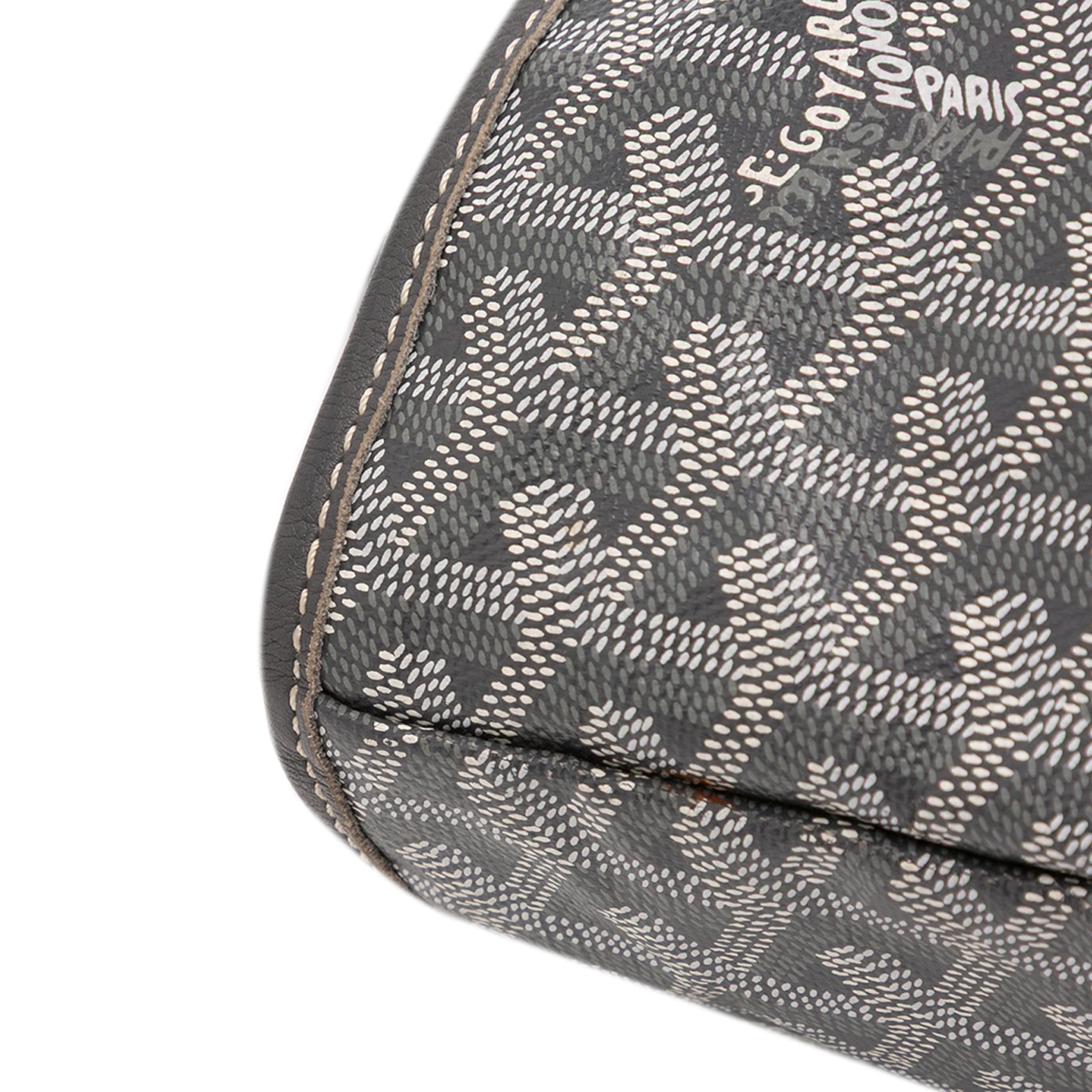 Le sac Saint Louis PM est confectionné en toile enduite avec des finitions en cuir, des lanières plates en cuir, une ouverture sur le dessus et une pochette intérieure. Il est en bon état.