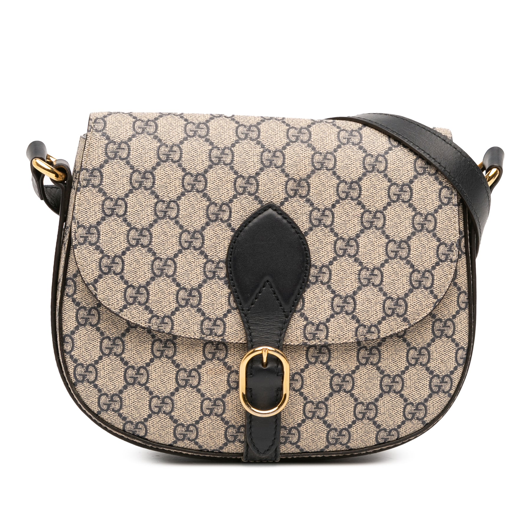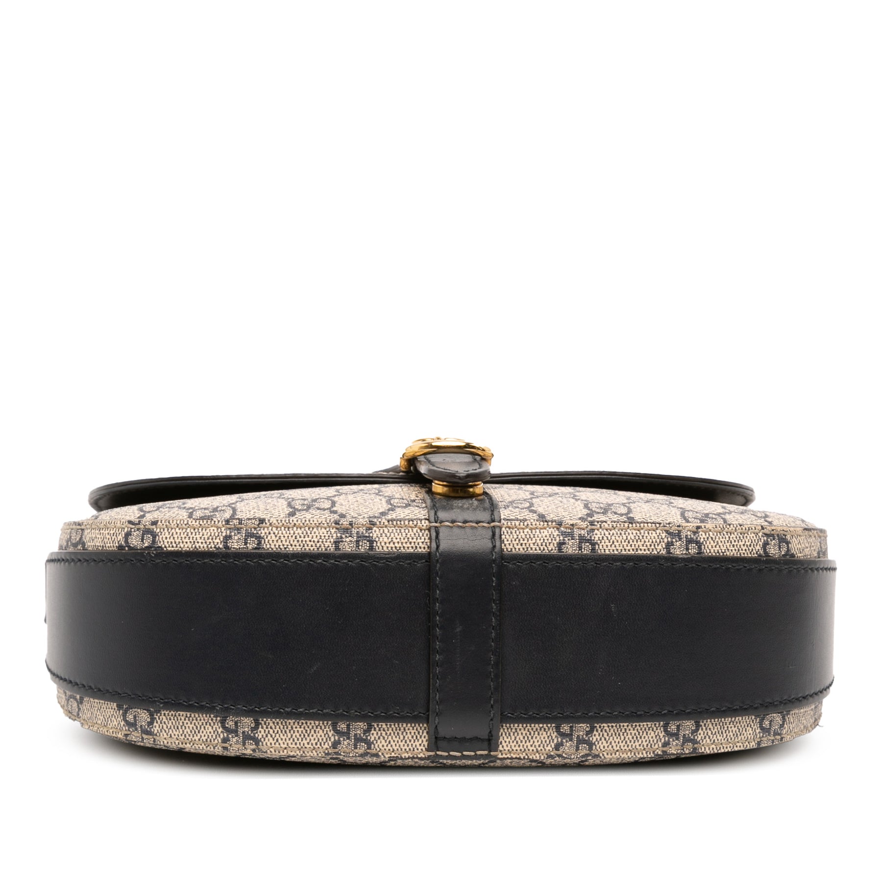 Ce sac bandoulière est en toile enduite avec des finitions en cuir, une bandoulière plate réglable en cuir, un rabat avant à fermeture magnétique et une poche intérieure zippée. Il est en bon état.