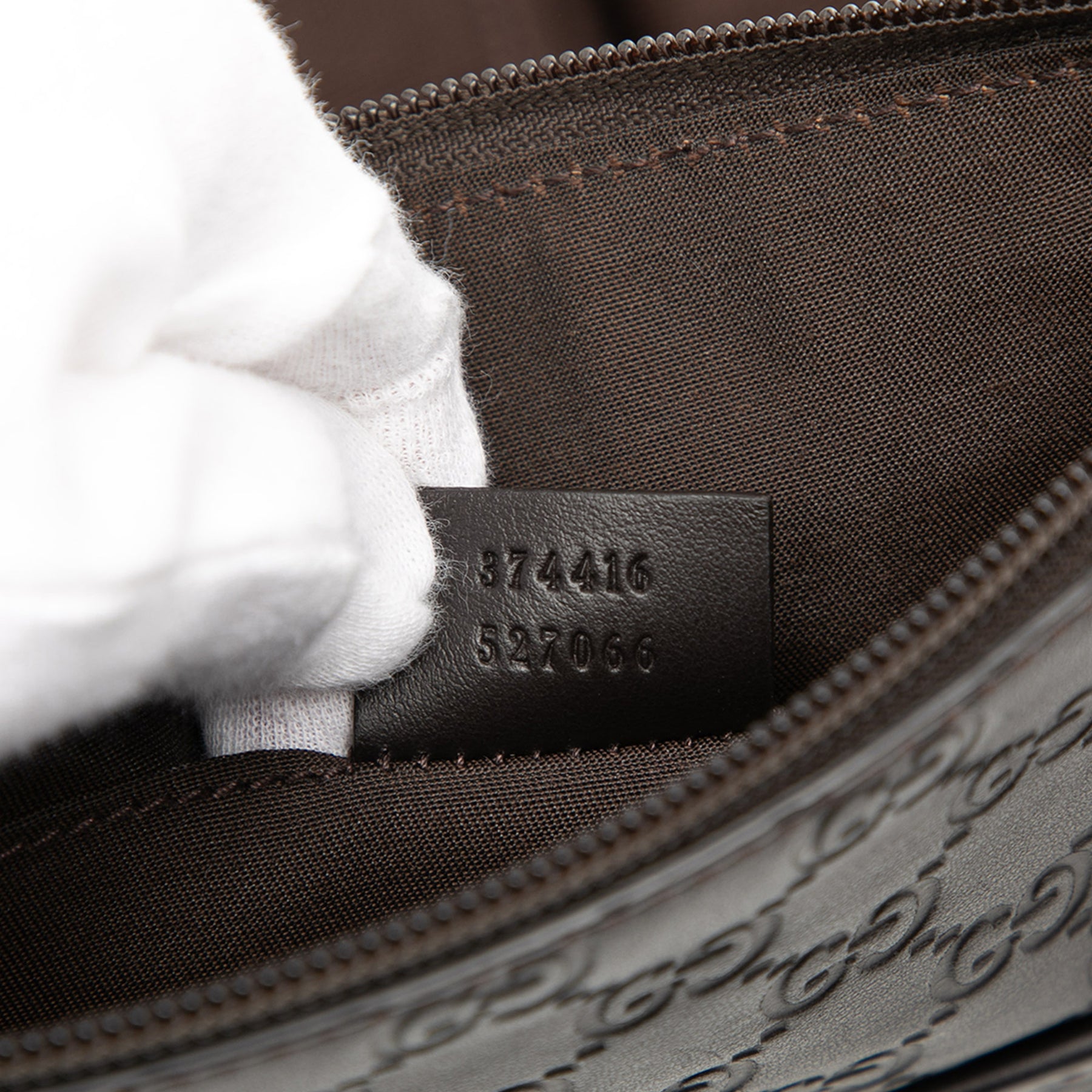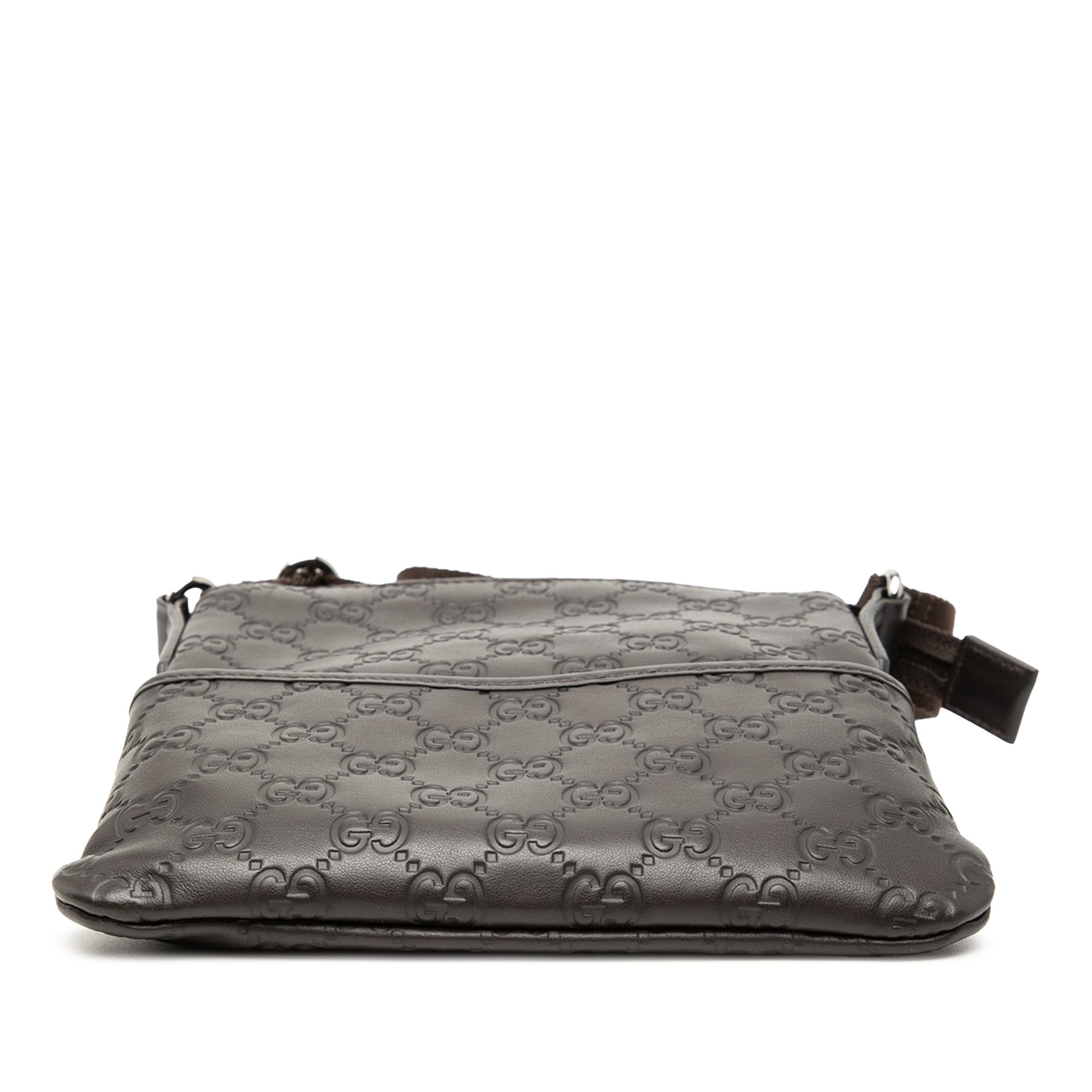 Ce sac bandoulière est en cuir embossé et possède une bandoulière plate réglable, une fermeture zippée sur le dessus, une poche extérieure plaquée à l'avant et une poche intérieure plaquée. Il est en excellent état.