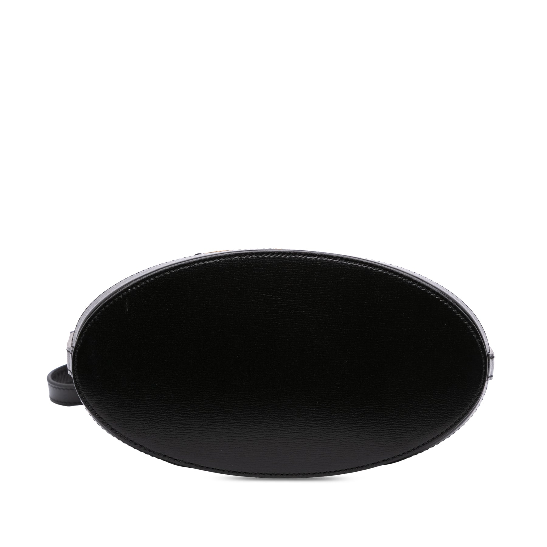 Le sac seau Horsebit 1955 est en cuir, avec une bandoulière plate réglable, une fermeture à cordon coulissant et une poche intérieure plaquée. Il est en excellent état.