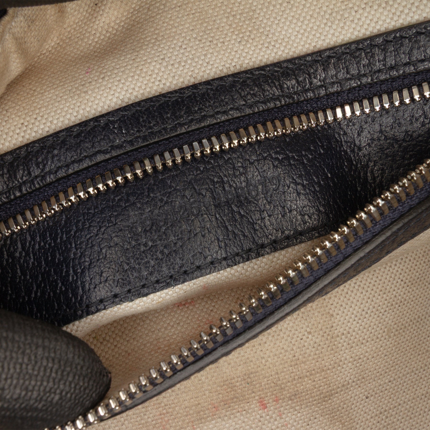 Ce sac bandoulière est en toile enduite avec des finitions en cuir, une bandoulière plate réglable en cuir, une fermeture zippée sur le dessus et une poche intérieure zippée. Il est en bon état.
