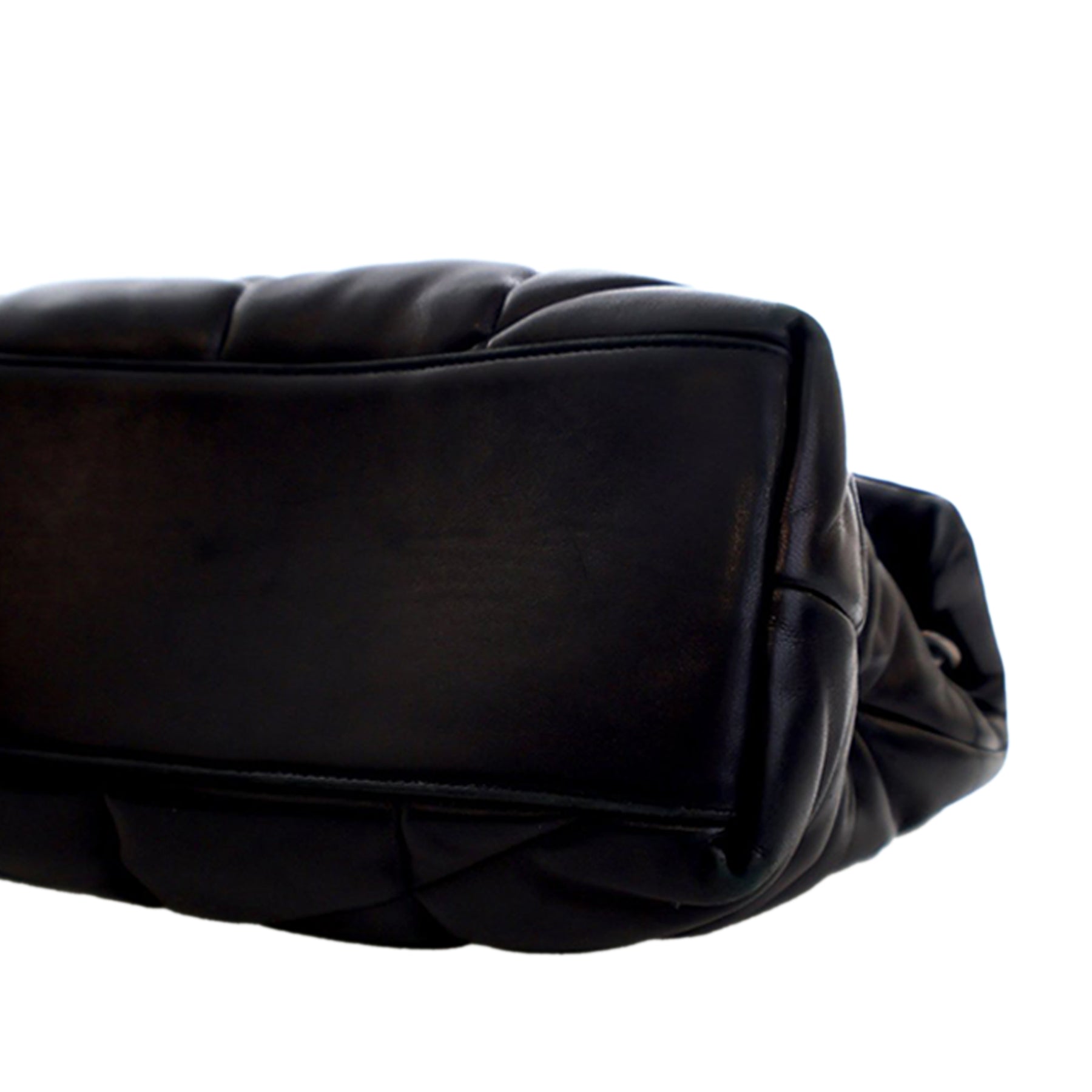 Le sac LouLou Puffer est confectionné en cuir nappa matelassé et possède des bandoulières en chaîne gourmette avec protection en cuir, un rabat avant à fermeture magnétique et une poche intérieure zippée. Il est en excellent état.