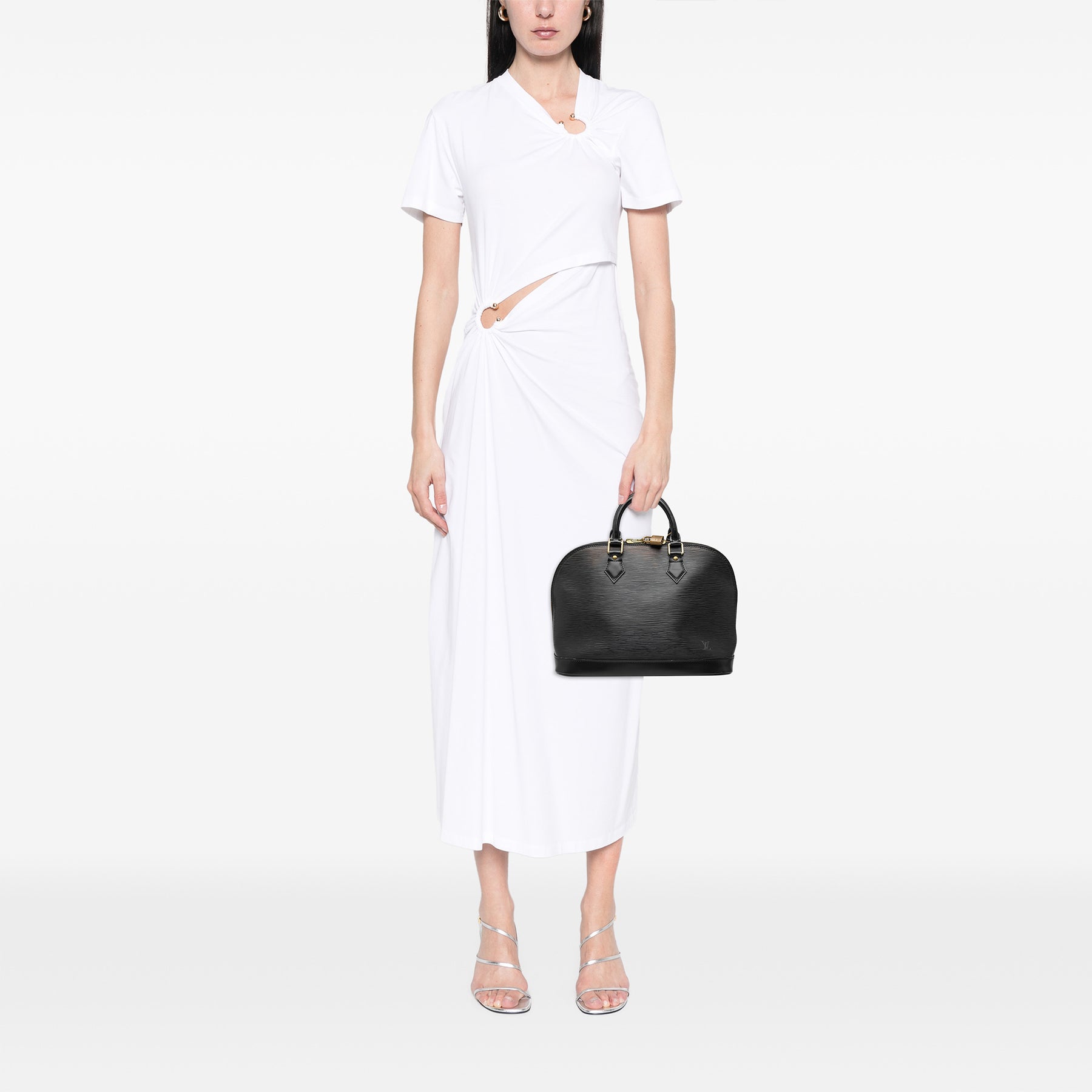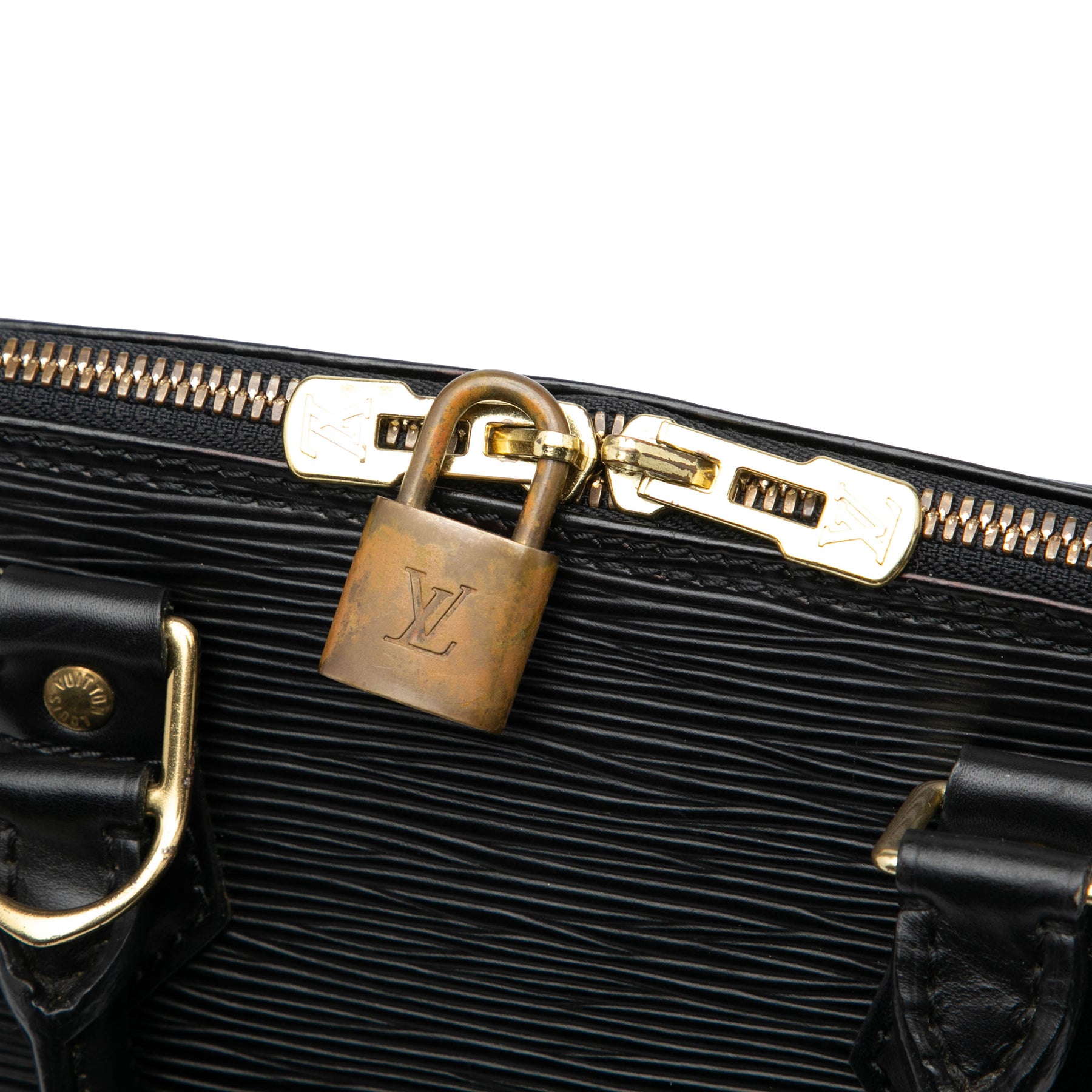 Le sac Alma PM est doté d'un corps en cuir Epi, de poignées roulées, d'une fermeture éclair sur le dessus et d'une poche intérieure plaquée. Il est en bon état.