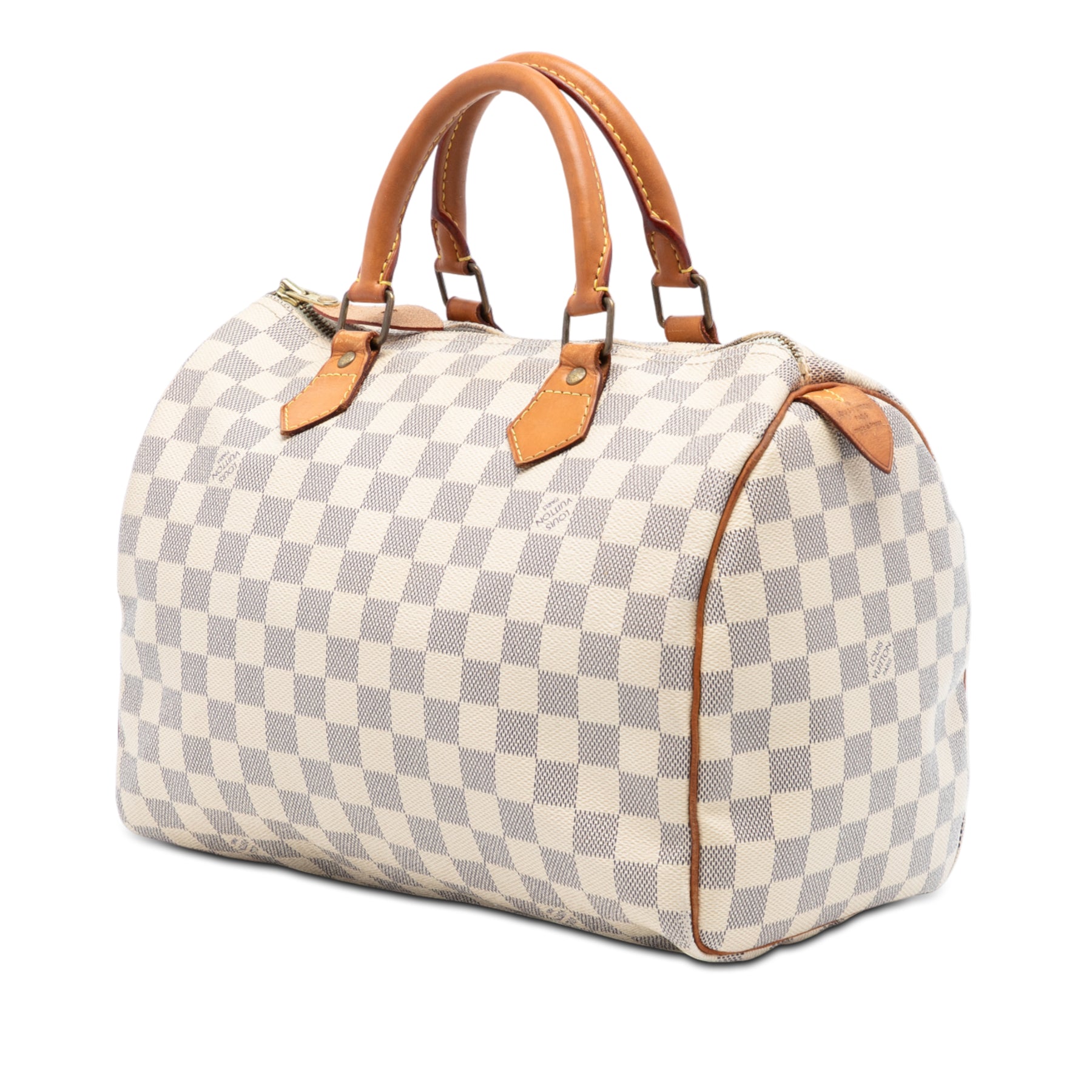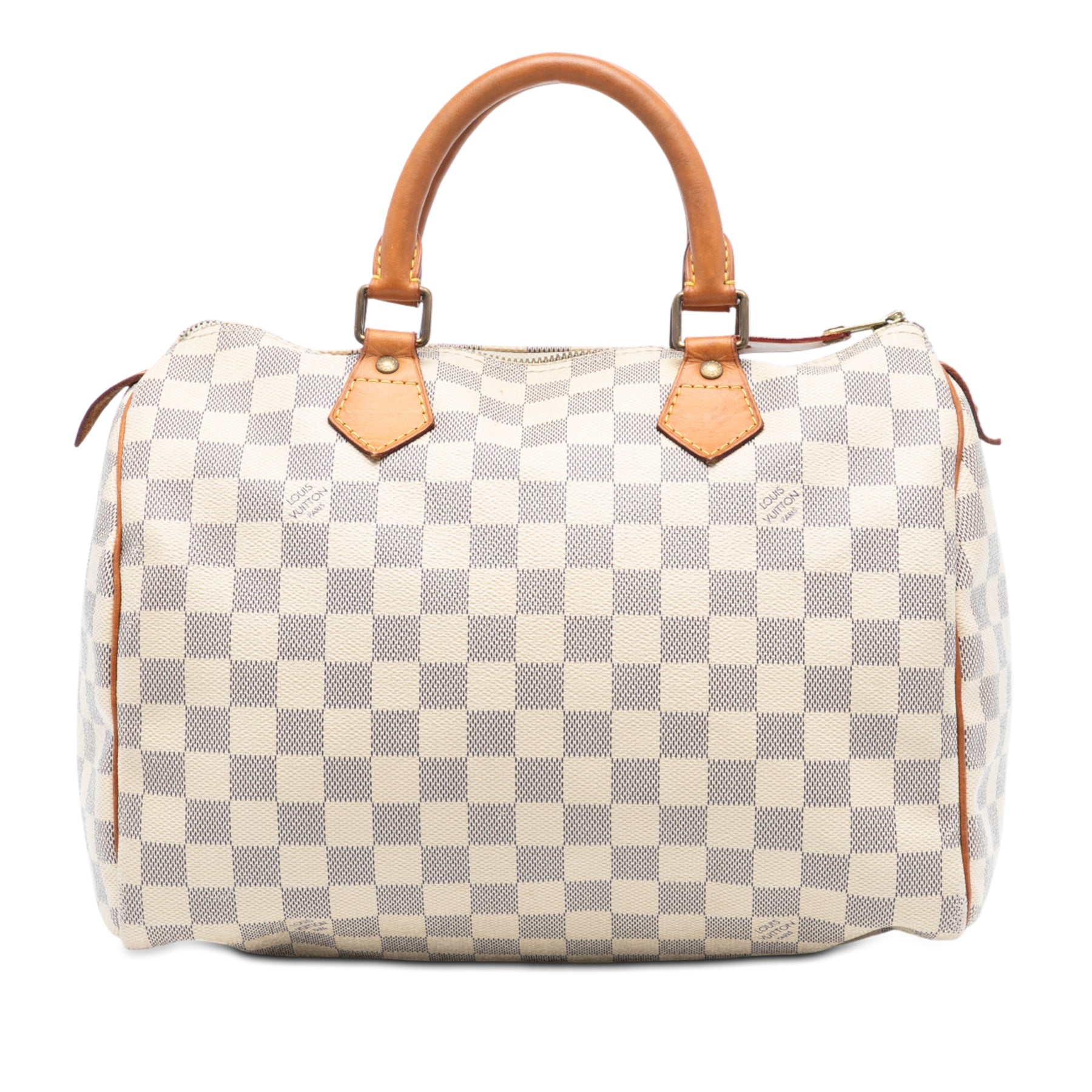 Le Speedy 30 est doté d'une toile Damier, de poignées roulées en cuir, d'une fermeture zippée sur le dessus et d'une poche intérieure. Il est en bon état.
