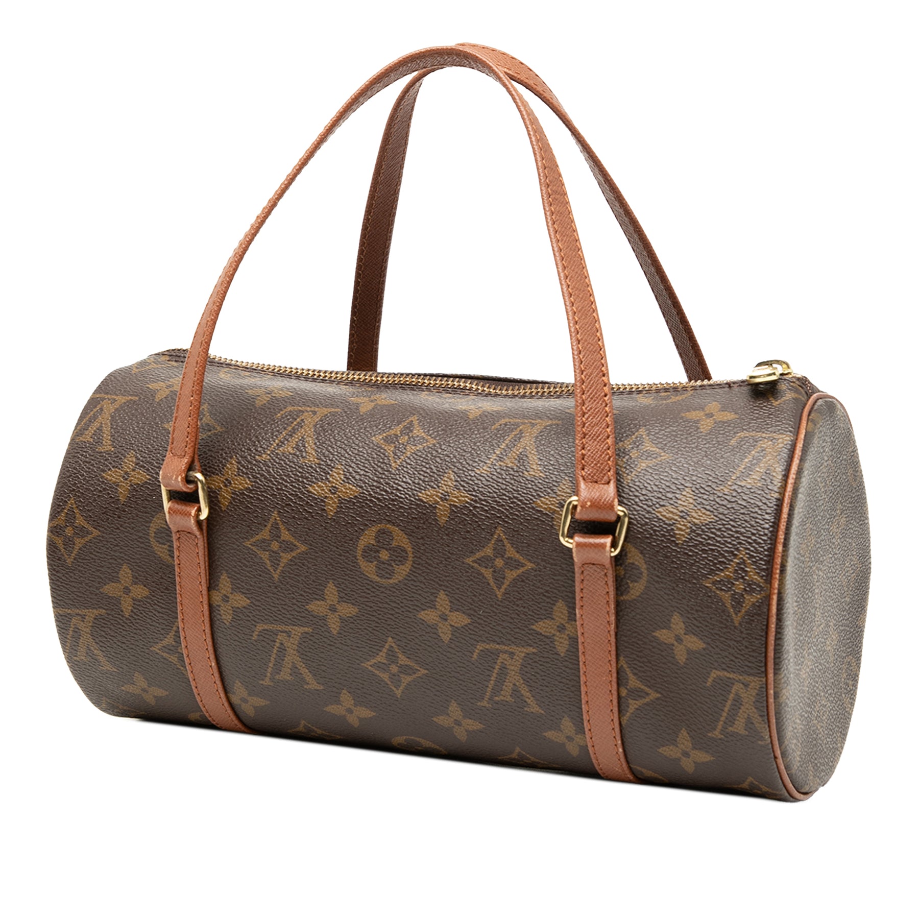 Le sac Papillon 26 est doté d'une toile monogrammée, de poignées plates en cuir et d'une fermeture zippée sur le dessus. Il est en excellent état.