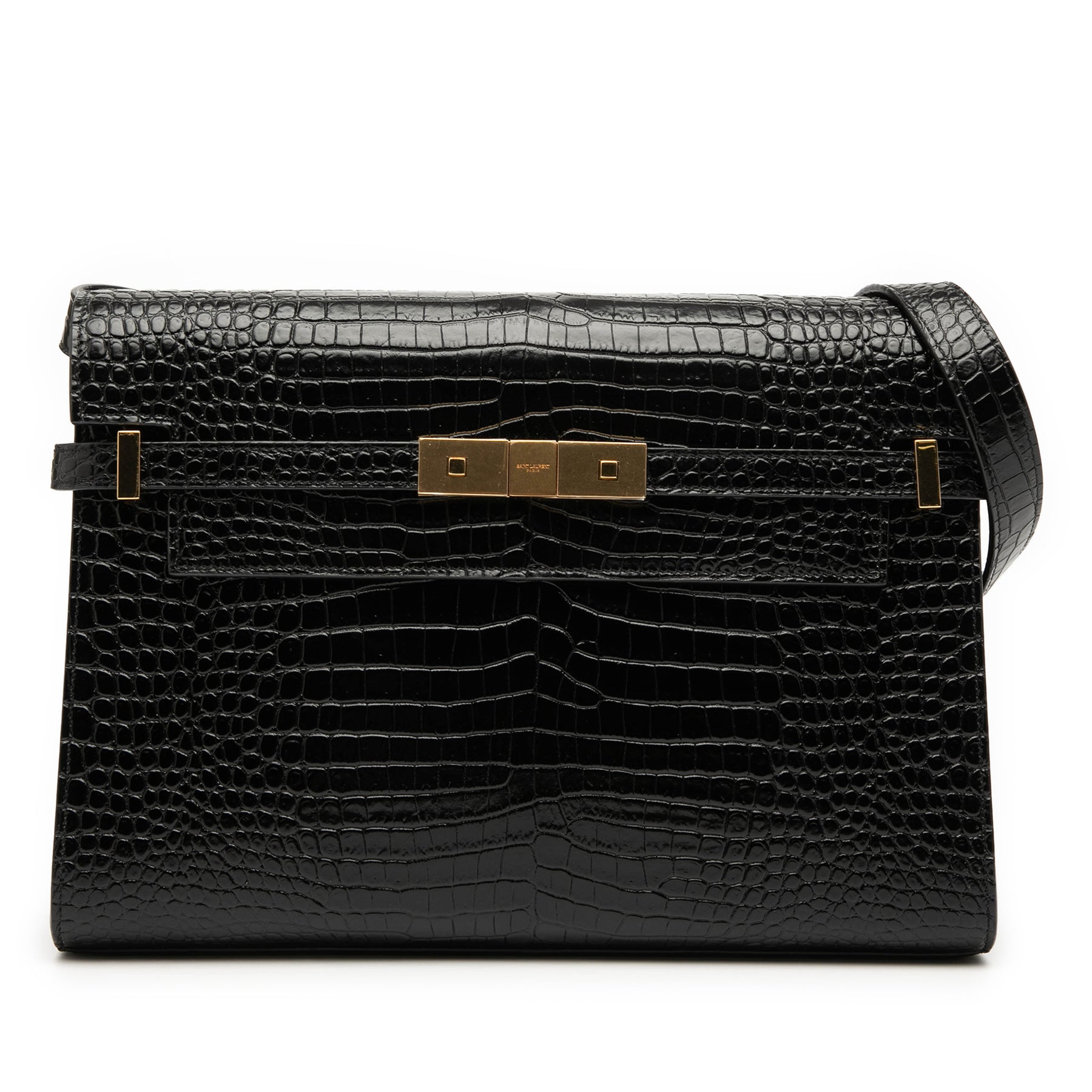 Saint Laurent Medium Shiny Croc Embossed Manhattan Sac bandoulière Noir – GABY PARIS Authentique