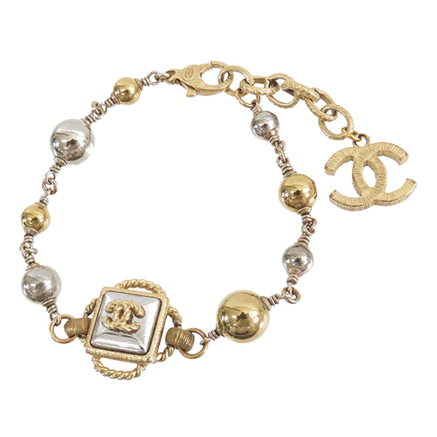Ce bracelet est composé d'un corps en métal plaqué or et palladium et d'un fermoir mousqueton. Il est en bon état.