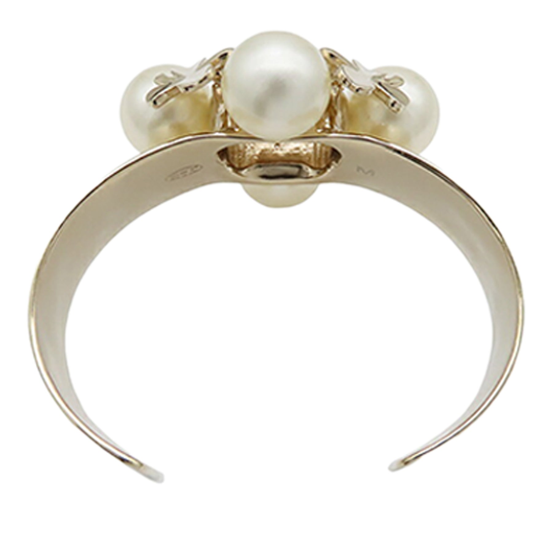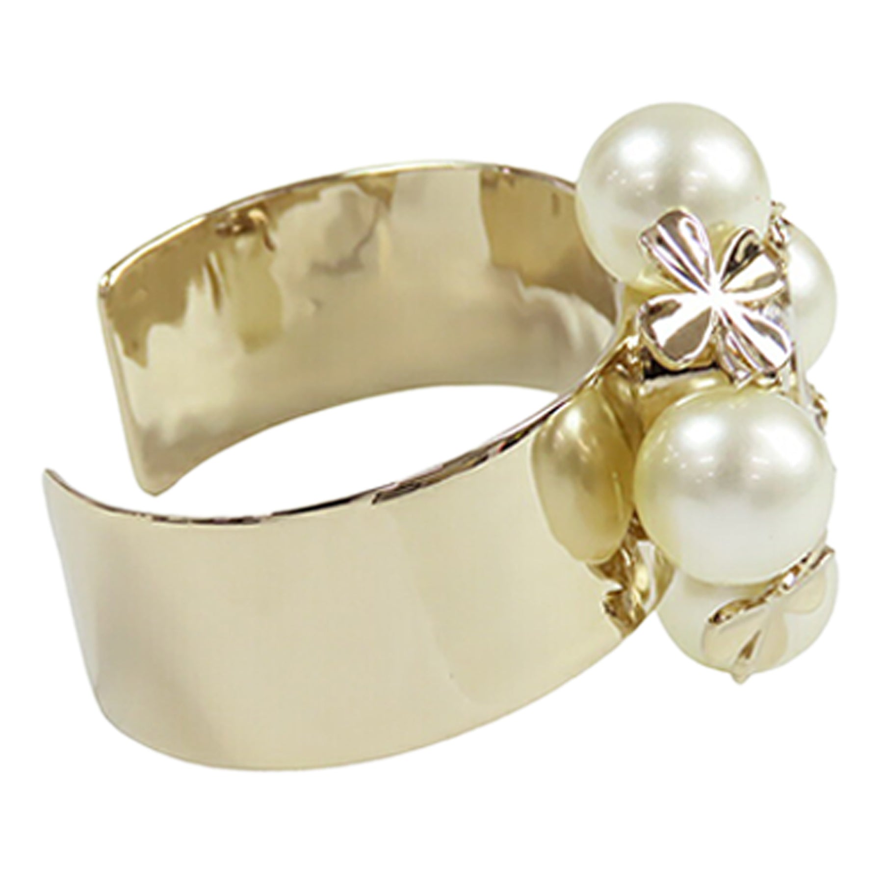 Chanel CC plaqué Perles fantaisie Clover Cuff Bracelet