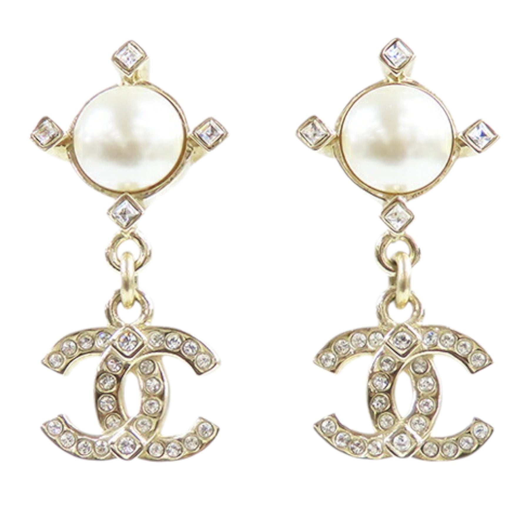 Chanel CC plaqué Perles fantaisie Swing fermoir poussette Boucle d’oreilles