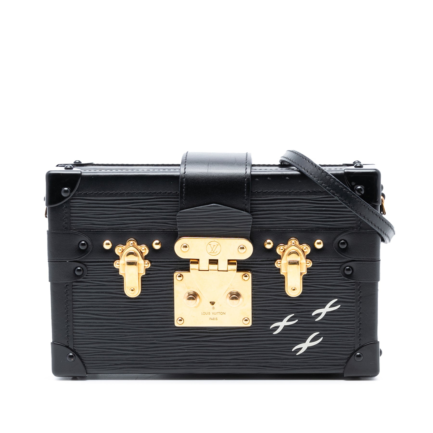 Le sac Petite Malle est confectionné en cuir Epi et possède une bandoulière plate en cuir ajustable et amovible, une fermeture magnétique et un fermoir S-lock sur le devant, ainsi qu'une poche intérieure plaquée. Il est en bon état.