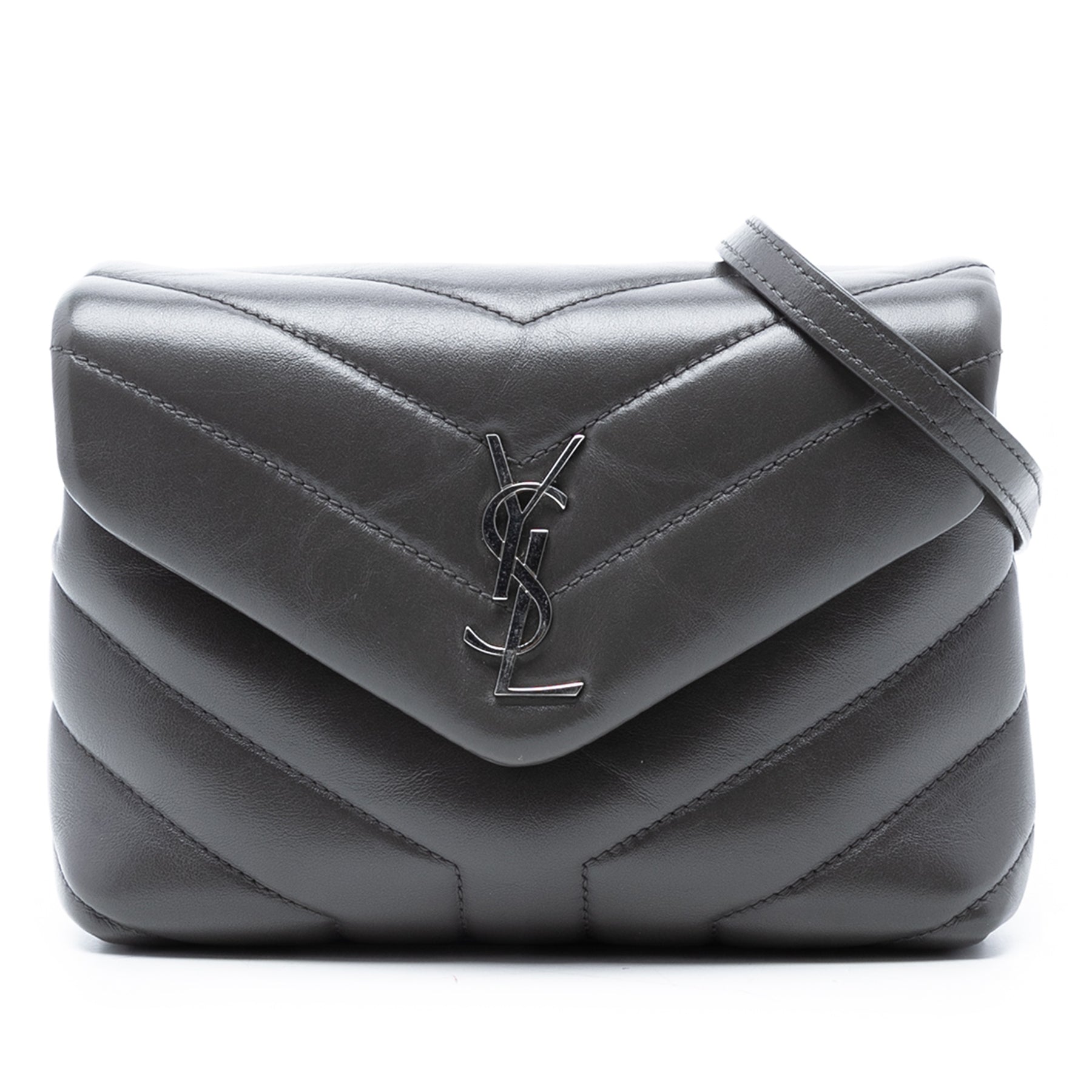 Le sac bandoulière Toy Loulou est en cuir matelassé et possède une bandoulière plate amovible, un rabat avant avec fermeture magnétique, ainsi que des poches intérieures zippées et plaquées. Il est en bon état.
