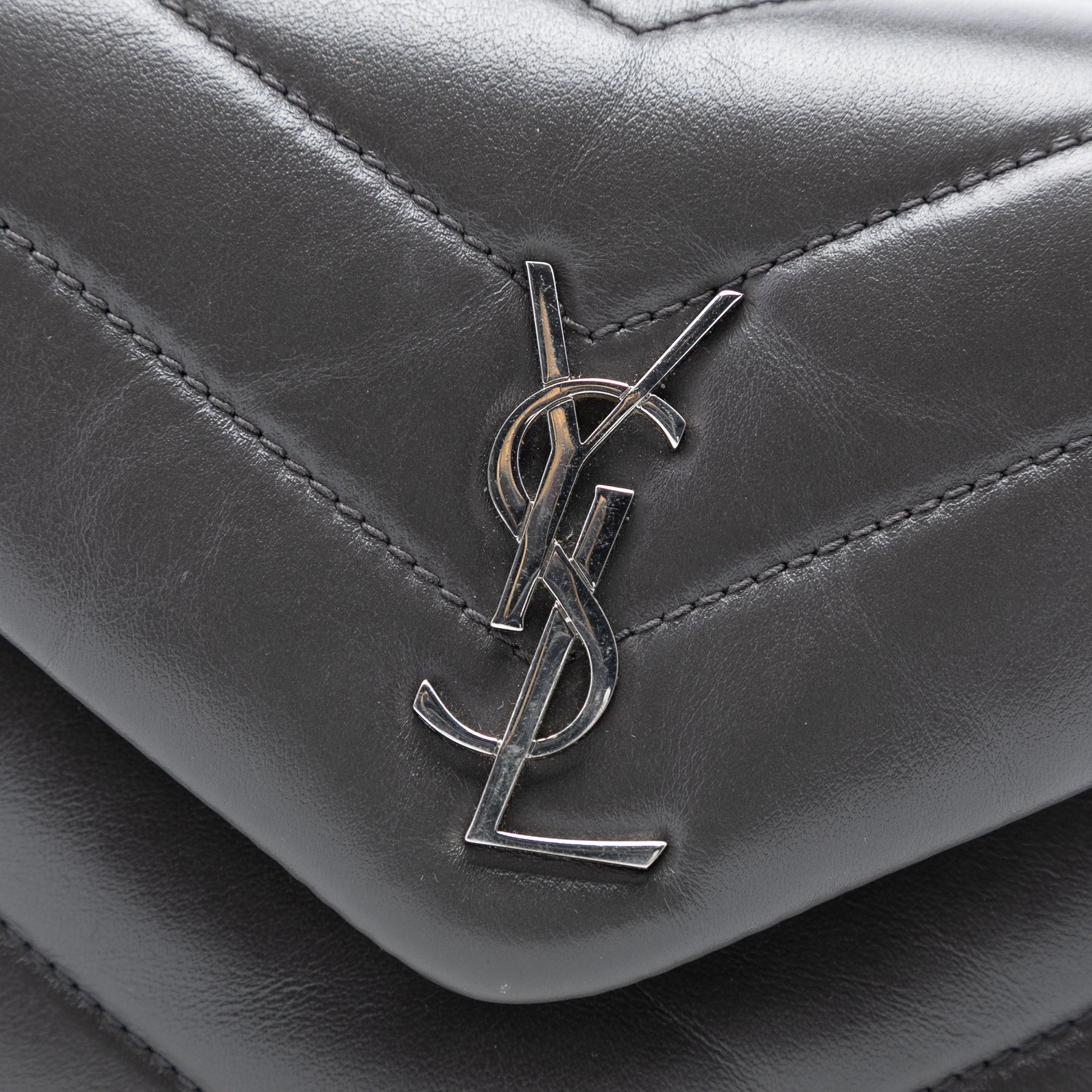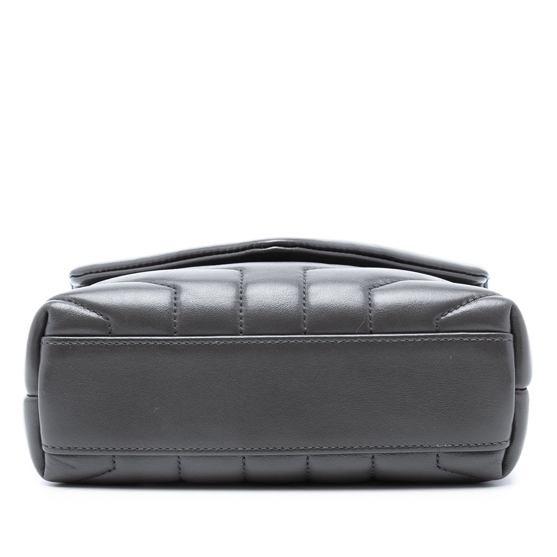 Le sac bandoulière Toy Loulou est en cuir matelassé et possède une bandoulière plate amovible, un rabat avant avec fermeture magnétique, ainsi que des poches intérieures zippées et plaquées. Il est en bon état.