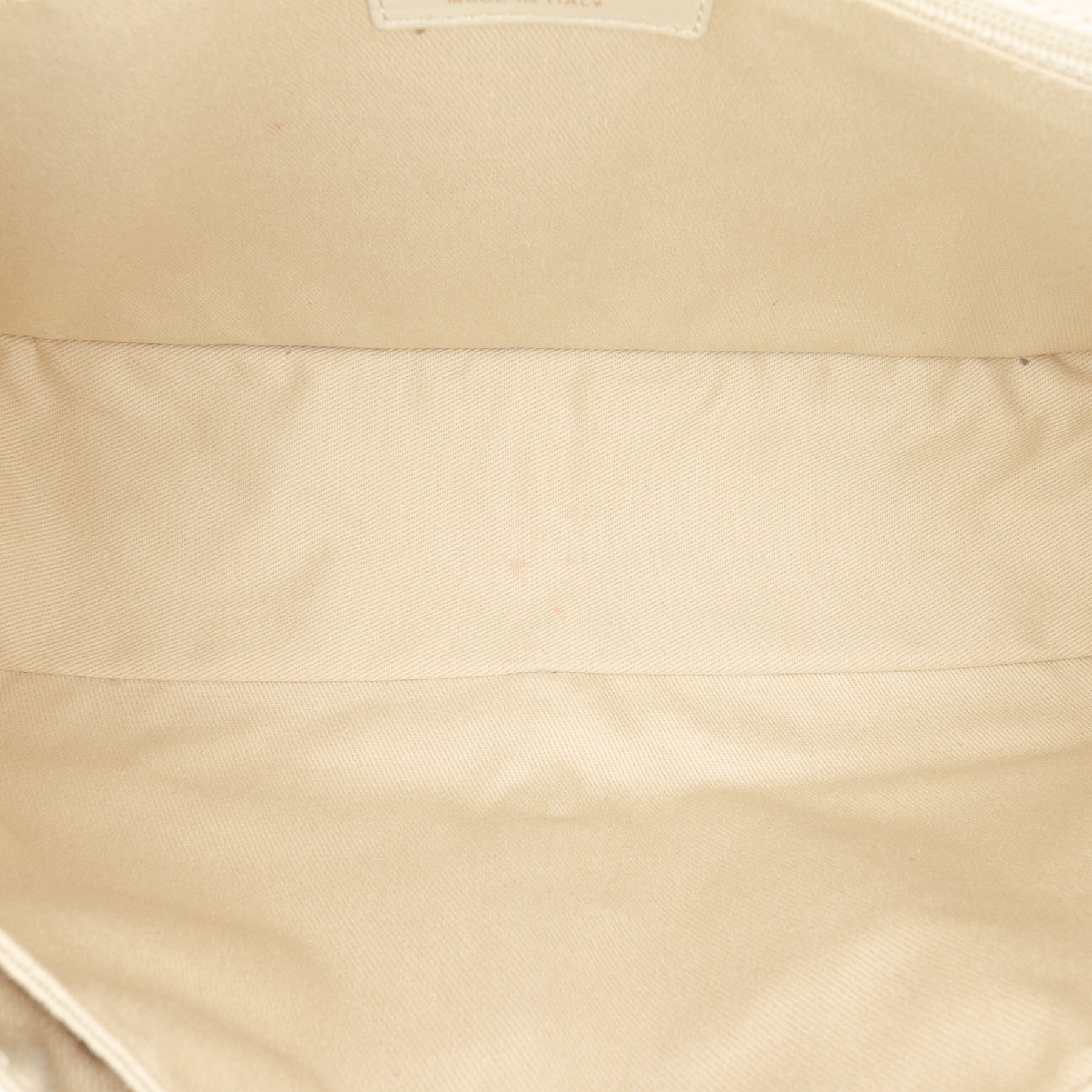 Ce sac bandoulière est confectionné en cuir d'agneau matelassé et possède une bandoulière en chaîne tressée, un rabat avant avec fermoir tourniquet, une poche extérieure plaquée, ainsi que des poches intérieures zippées et plaquées. Il est en bon état.