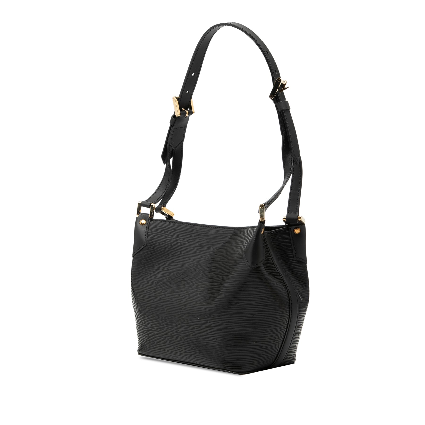 Le sac Mandara PM est doté d'un corps en cuir Epi, d'une bandoulière plate réglable, d'une fermeture magnétique sur le dessus et d'une poche intérieure plaquée. Il est en bon état.